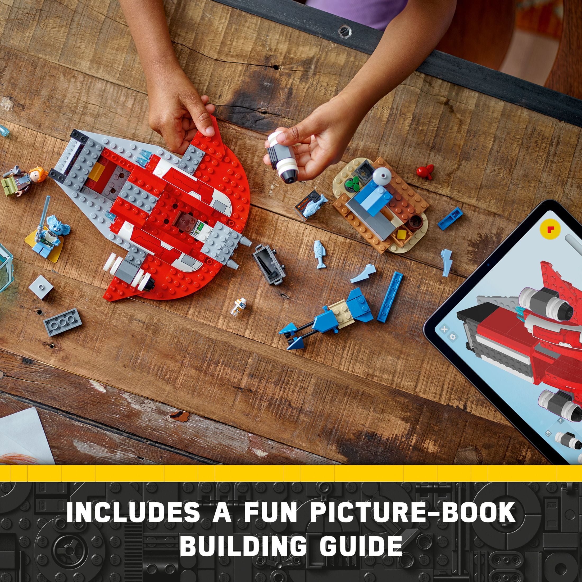 Introduce preschoolers aged 4+ to building and playing in the LEGO Star Wars universe with this starter set featuring The Crimson Firehawk starship from Star Wars: Young Jedi Adventures. It has a Starter Brick base to give young builders a confident start, and there’s space for all 3 included Star Wars characters (Nash Durango and Nubs with a lightsaber LEGO minifigures, plus an RJ-83 LEGO droid figure) in the cockpit. The set also includes a Star Wars buildable speeder bike toy that fits inside the starship vehicle, plus a small marketplace build for creative play. Star Wars building toy for kids ages 4 and up makes the perfect anytime gift.The simple pictorial instructions are ideal for children who are only just learning to read. For added digital fun, the LEGO Builder app has zoom and rotate tools that let kids visualize their model as they build (perhaps with just a little help from an adult or older sibling).A top LEGO gift idea for Star Wars: Young Jedi Adventures fans, this collectible building toy mixes well with the Tenoo Jedi Temple set (75358 – sold separately).