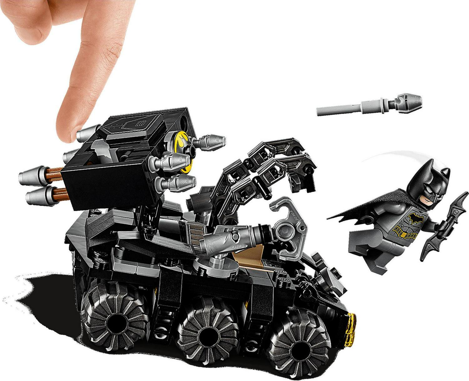 – Bat-Tank features an opening minifigure cockpit, rotating turret with 4 flick missiles, plus a detachable stud shooter and hook shooter