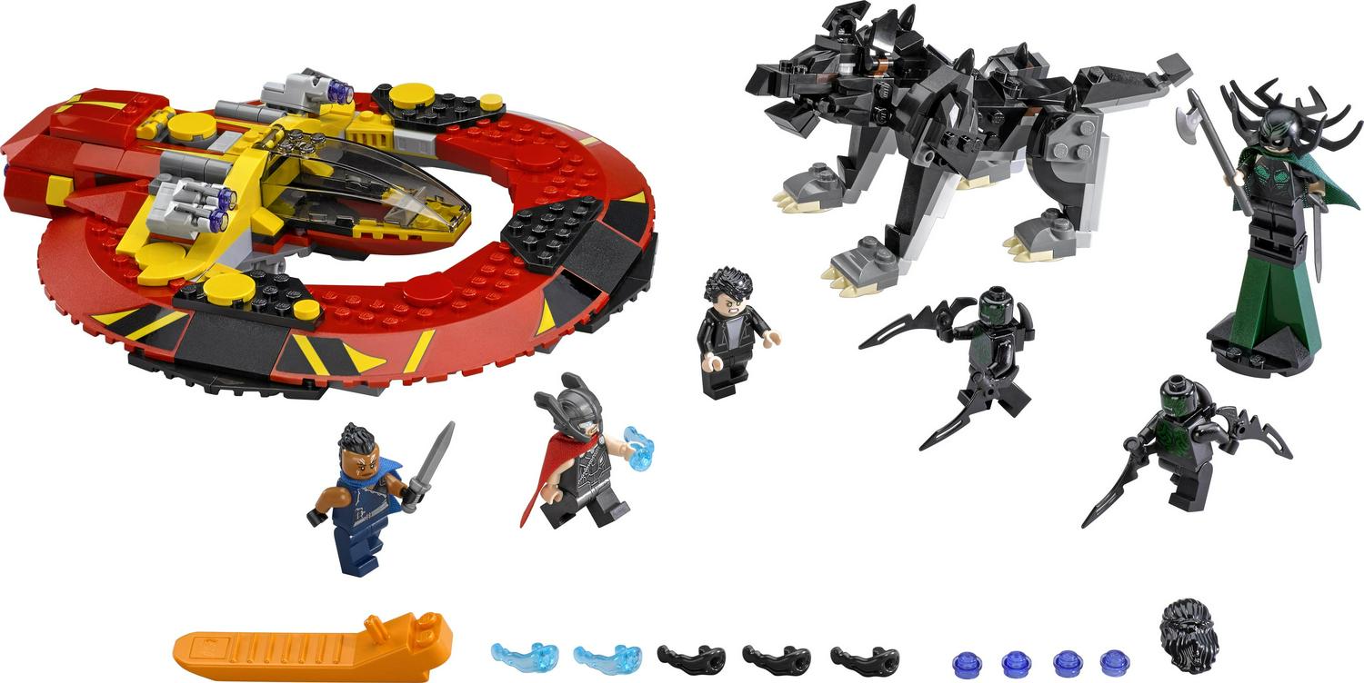 – Includes Thor, Bruce Banner, Valkyrie, Hela and 2 Berserker minifigures, plus a buildable Fenris wolf figure