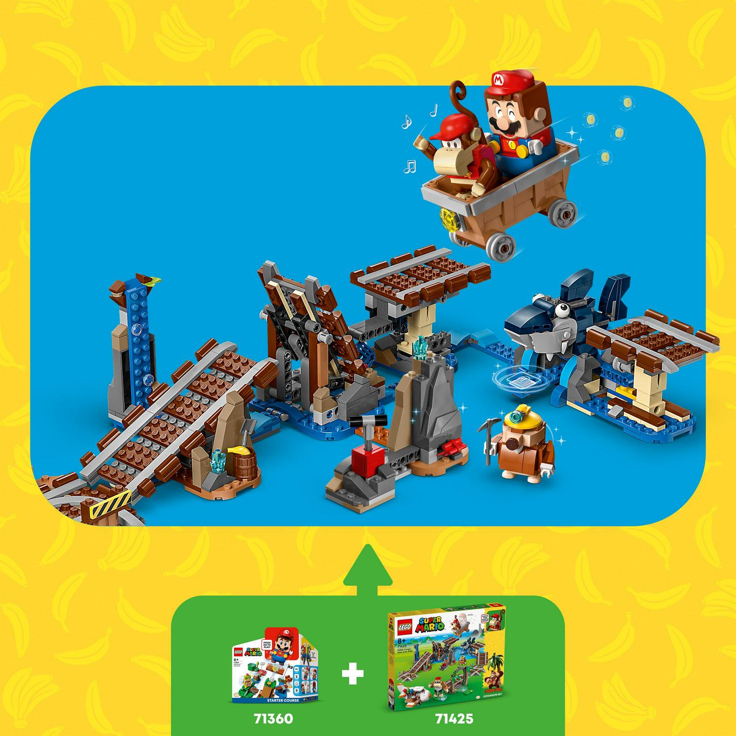 – Diddy Kong’s Mine Cart Ride Expansion Set (71425) Recreate mine cart-riding, airplane-flying, rock-exploding Donkey Kong mine cart challenges with this LEGO Super Mario set for kids