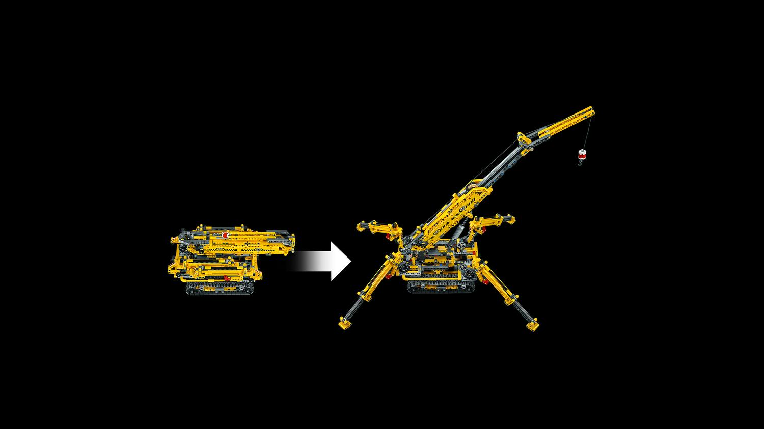 – This construction toy set features extendable outriggers that move both laterally and vertically, an extendable boom, a hoist with extensive cabling and safety lock, a 180°-rotating superstructure, and rugged crawler tracks