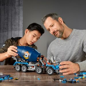 – With 1, 163 pieces, kids will enjoy a challenging build before exploring all the features of the concrete mixer truck