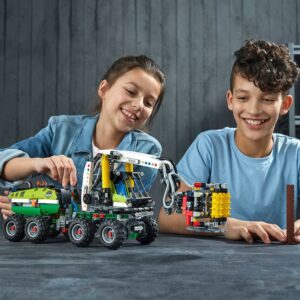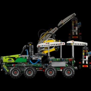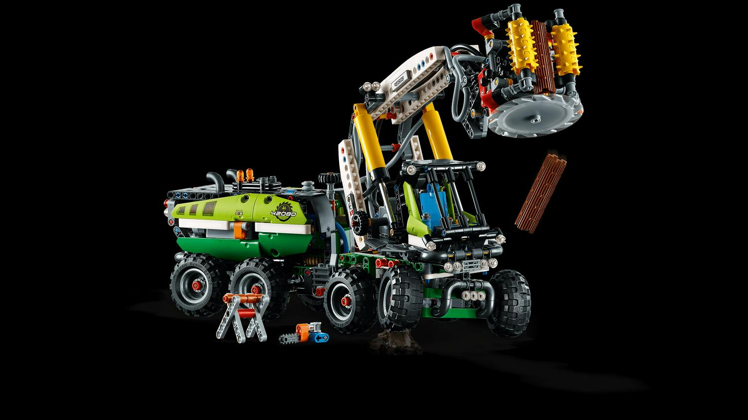 Enjoy a rewarding build and play experience with this advanced technical toy. This detailed replica of a real-life forest harvester comes with lots of realistic features, including working suspension, articulated steering and a multidirectional harvester head with a spinnable cutter blade. Activate the included LEGO Power Functions motor and engage the advanced pneumatic system to operate the motorized boom and grabber. You can also rotate the driver s cab to move the boom through more than 180°. This 2-in-1 advanced building toy comes with 2 buildable tree trunks and rebuilds into a rugged Log Loader.