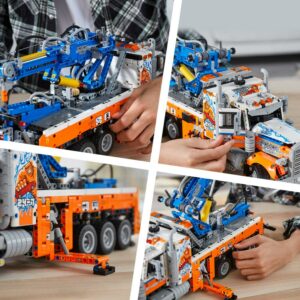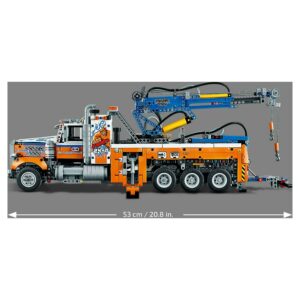 Open up the world of engineering for kids with this LEGO Technic Heavy-duty Tow Truck (42128) toy model. Packed with details, it s a great tribute to the world s best-loved tow trucks. Check out its authentic grille, air filters, lights, exhaust pipe, and fresh color scheme. Then explore all the pneumatic and mechanical functions that make this model so realistic. A construction toy packed with working functions, this tow truck toy with a crane is filled with impressive features. Open the hood to see the 6-cylinder inline engine with moving pistons. Steer by rotating the pin on the roof. Activate the crane, pump up the boom, pull out the winch and extend the outriggers. And for the first time in LEGO Technic history, this truck has a lifting axle to pull down extra wheels and spread the weight of loads. A great introduction to engineering for kids, LEGO Technic sets feature realistic movement and mechanisms that introduce LEGO builders to the universe of engineering in an approachable and realistic way. This tow truck with crane model measures over 8.5 in. (22 cm) high (with crane down), 23 in. (58 cm) long (with boom down) and 5.5 in. (14 cm) wide (with outriggers up). Contains 2017 pieces.