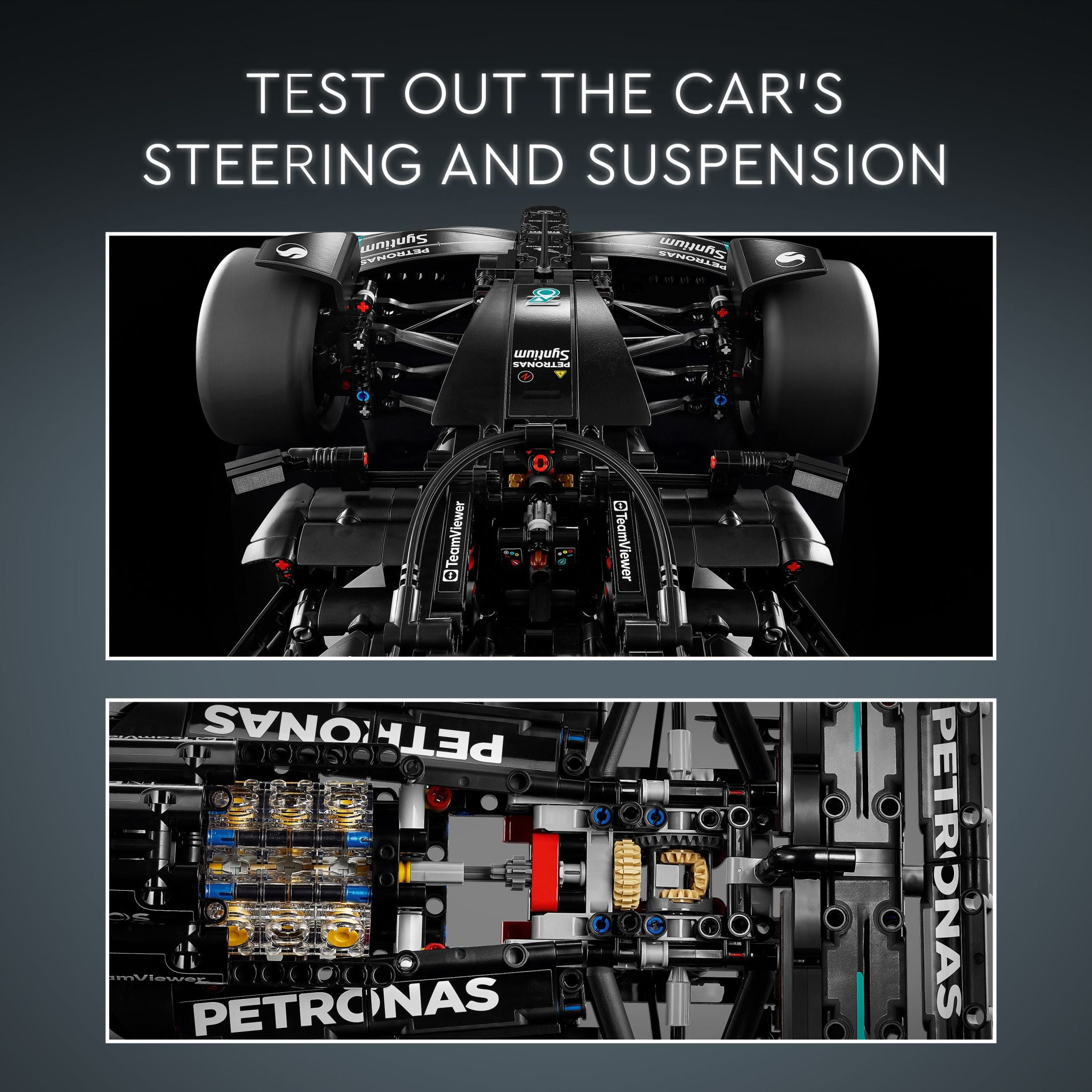 Build and display a Mercedes F1 model car – This LEGO Technic Mercedes-AMG F1 W14 E Performance building kit for adults is packed with authentic details from the 2023 car to delight motorsport fans Test out the steering – Features include slick tires, plus steering that can be controlled using the steering wheel or with the knob on top of the car Authentic features and details – Features include the differential and the 6-cylinder engine with its moving pistons, plus the opening wing inspired by the real-world car’s DRS A display piece for home or office decor – With authentic livery details, this model can be admired from every angle, so celebrate your building achievement by placing it on display A racing car gift project for adults – This Mercedes-AMG F1 W14 E Performance set makes a rewarding gift for adult fans of motorsport who enjoy challenging projects 3D building instructions – Get ready to build like never before with the LEGO Builder app, where you can save sets, track your progress, zoom in and rotate your model in 3D Measurements – A 1,642-piece set with a model measuring over 5 in. (13 cm) high, 25 in. (63 cm) long and 10 in. (26 cm) wide