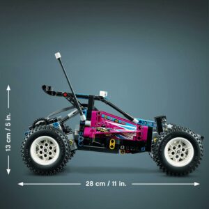 Travel back to the 1980s with this LEGO Technic Off-Road Buggy 374 Piece Block Building Set. It s fun for all ages from 10 and up! After creating the model, bring it to life using the free CONTROL+ app. The buggy is angled at the front to give stability when jumping and performing tricks, just like classic RC toy cars. With front and back suspension, plus huge tires, an opening hood, antenna, and retro stickers, this car is packed with attitude. Unleash epic stunts with the free CONTROL+ app to really put this off-toad buggy car to the test. Use the app to drive forwards, backward, steer, and perform stunts. With different controls, sound effects, challenges, achievements, and more, there s so much to explore. A rewarding build, the LEGO Technic Off-Road Buggy features realistic movement and mechanisms that introduce LEGO builders to the universe of engineering in an approachable and realistic way.