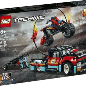 LEGO Technic Stunt Show Truck and Bike 42106 Building Kit with Motorcycle, Toy Truck and Trailer (610 pieces)