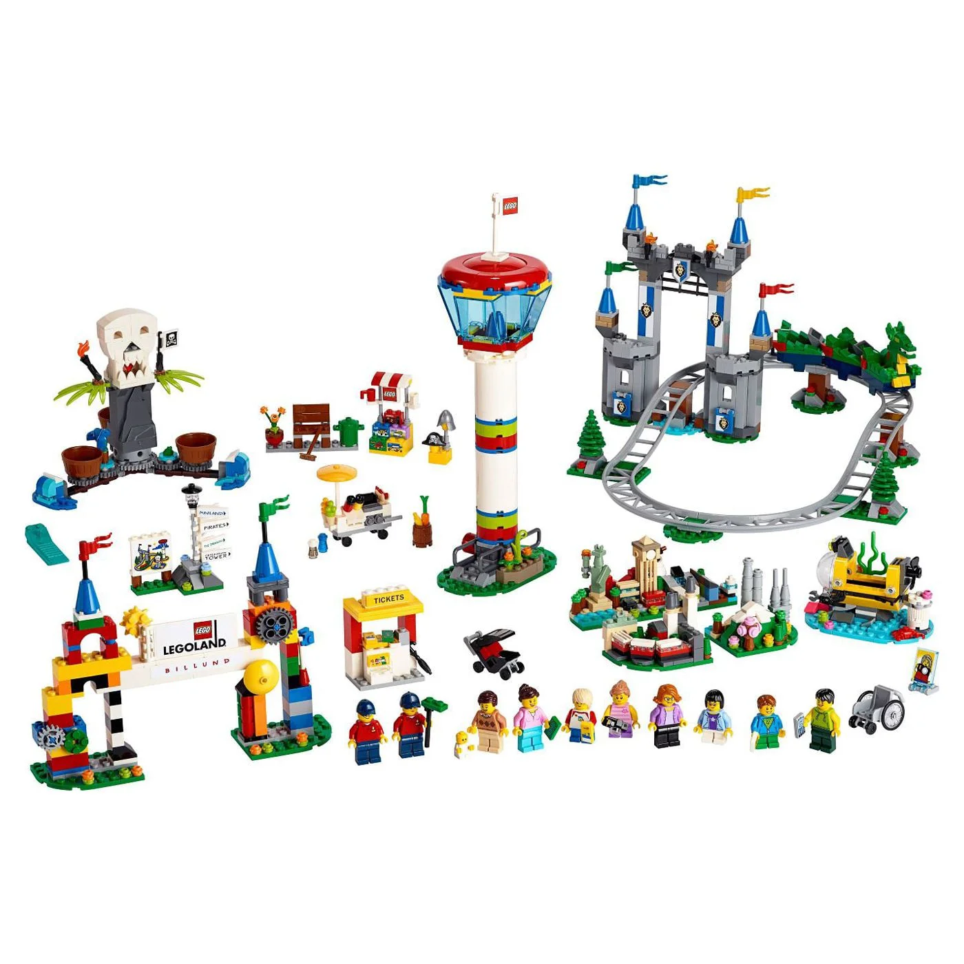 Extend the ultimate LEGOLAND experience at home. Features 10 minifigures, including 2 LEGOLAND Park employees, more than 1300 elements and various fun attractions and play scenarios.