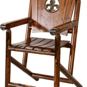 Add some height to your home with our Leigh Country Char-Log Adult Outdoor Wood Bar Height Armchair with Fleur-De-Lis Medallion. Unlike a typical bar stool, this bar height chair proudly features arm rests for extra comfort. Its built-in design of the Fleur-de-lis medallion adds a New Orleans flair to your favorite bar chair. Pairs perfectly with our Char-Log Round Bar Table (Sold separately). Part of our Char-Log Series of adult outdoor bar height patio chairs.