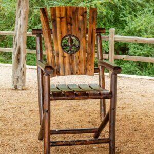 Leigh Country Char-Log Adult Outdoor Wood Bar Height Armchair with Fleur De Lis Medallion – Brown