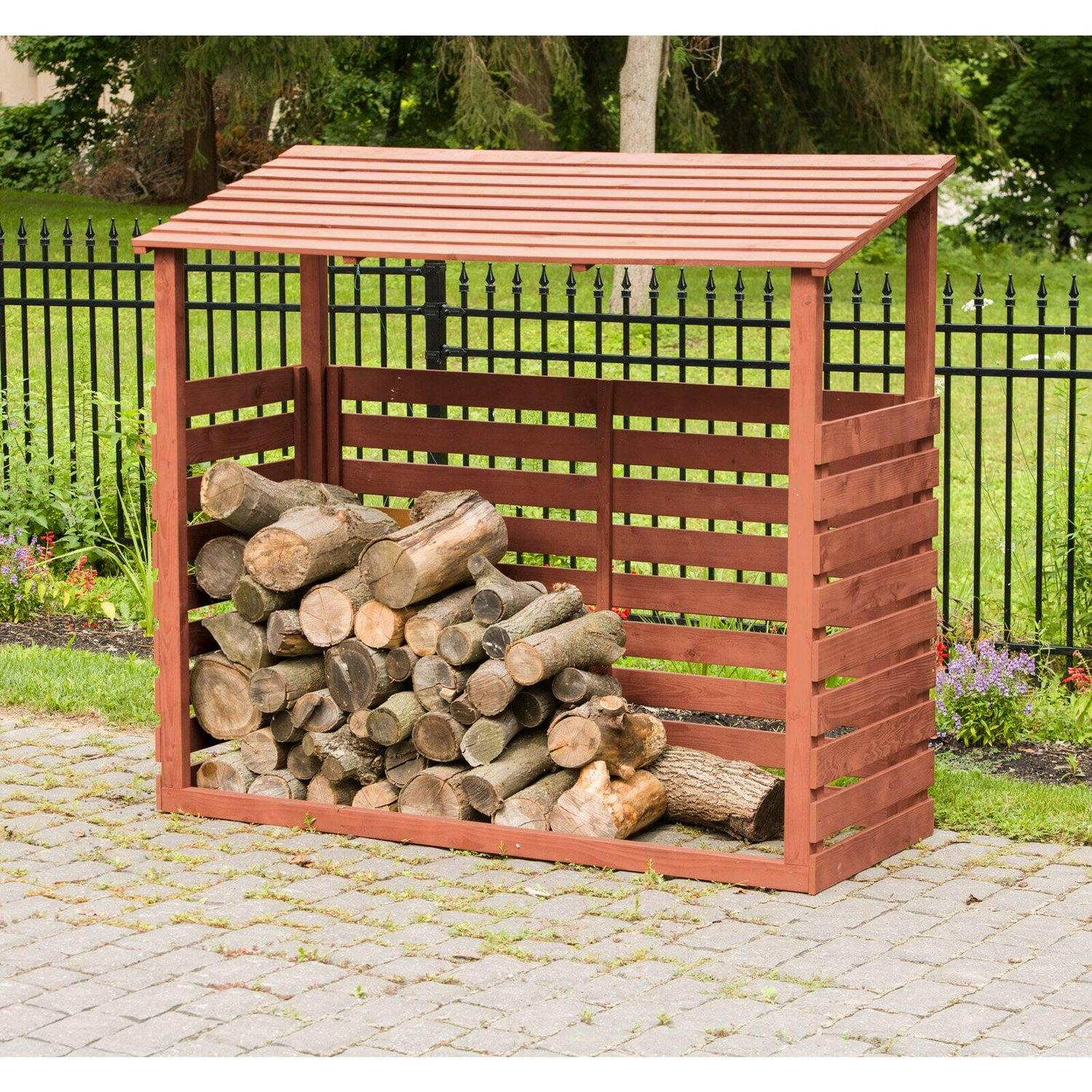 Store firewood year-round with the Leisure Season Firewood Shed. It s crafted of decay-resistant cedar wood to help it last for years to come. The slanted roof allows the rain to run off to keep your wood dry. The front opening provides easy access to your firewood. Don t worry, the assembly hardware is included.