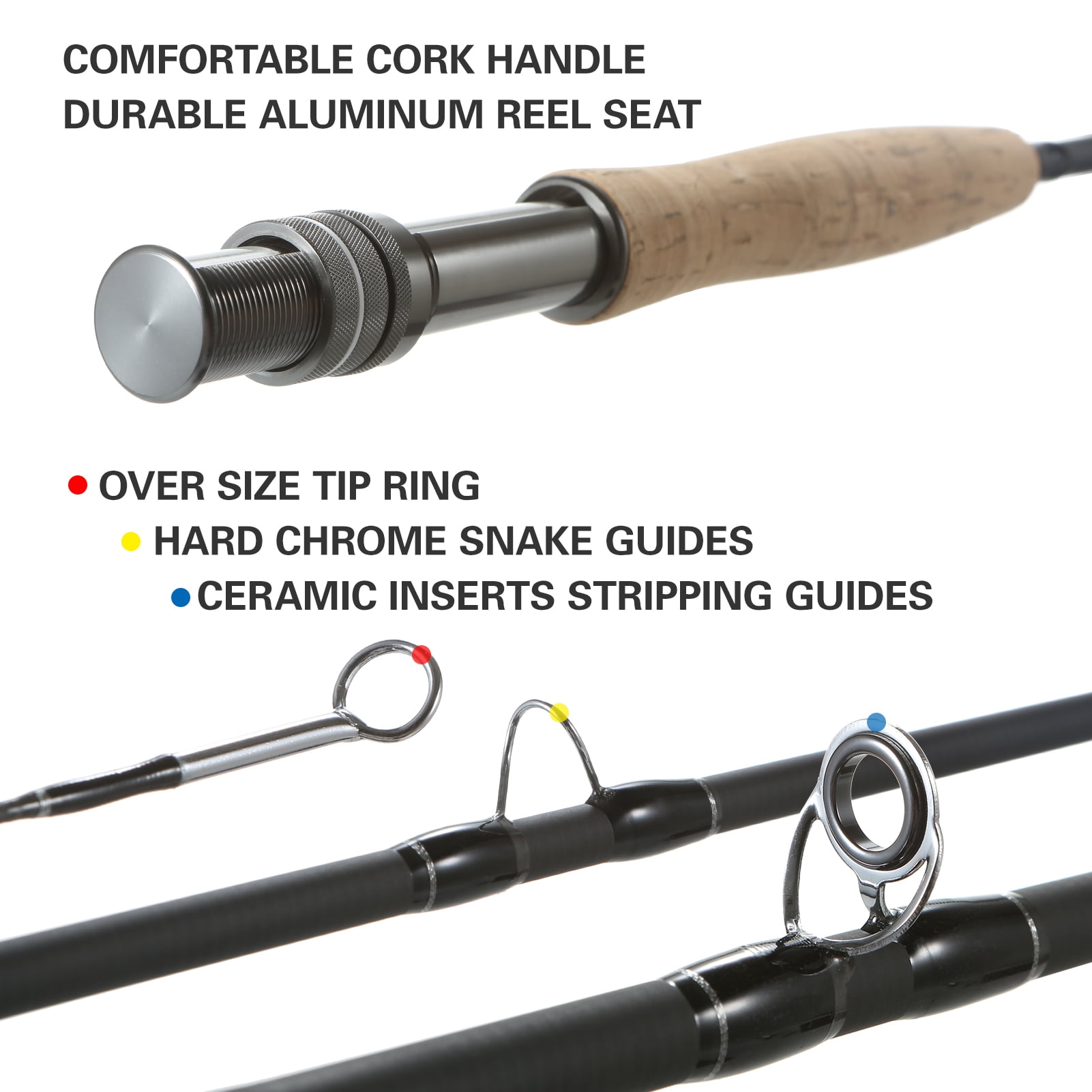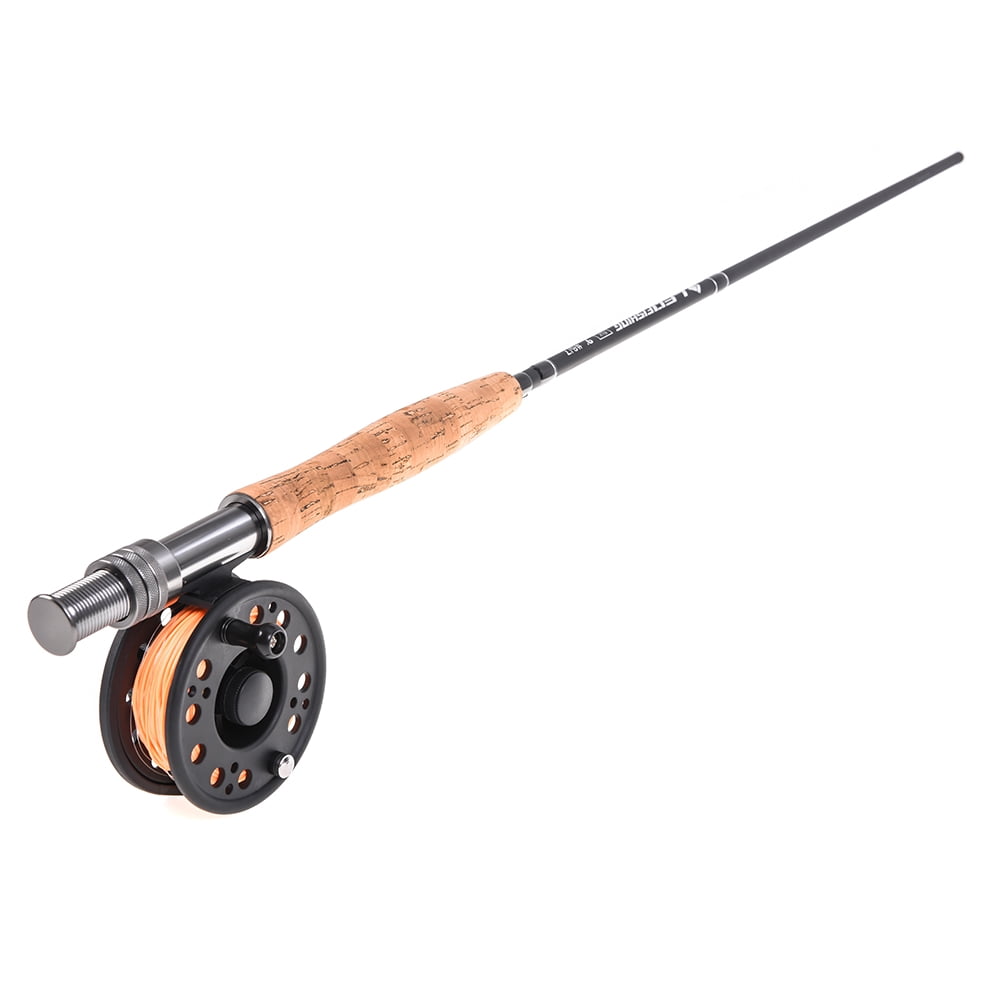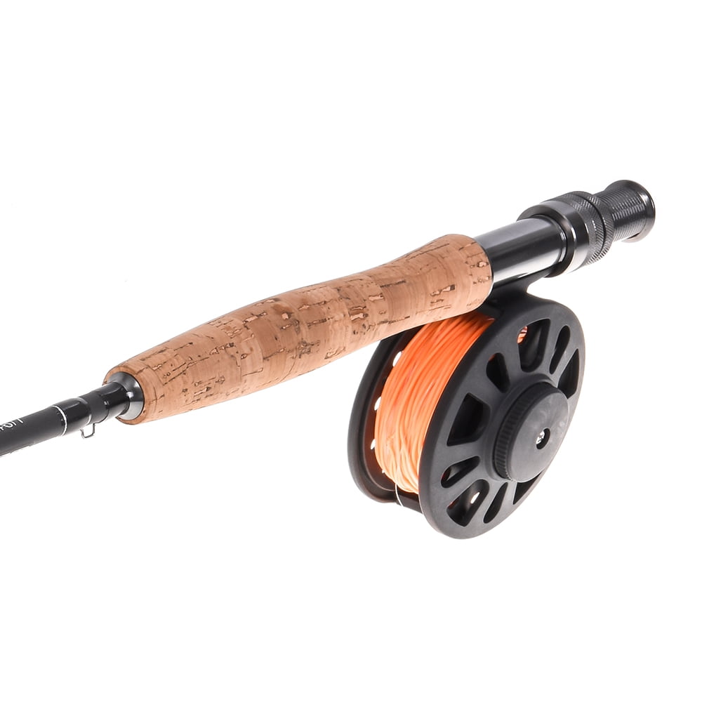 9′ Fly Fishing Rod and Reel Combo with Carry Bag 10 Flies Complete Starter This fly combo includes a fly rod, reel with line, 10 flies, storage bag. It is designed for new fly fisher to get started right away. Specifications: Model: 28010-TA-#7 Rod: Model: #7/8 Full Length: 9ft Section: 4 Top Dia.: 1.5mm Butt Dia.: 9.2mm Closed Length: 2.46ft Weight: 128g / 4.5oz Reel: Model: GLA 7/8 Material: ABS Diameter: 8.6cm / 3.4in Weight: Approx. 132g / 4.6oz Fly Line: Color: WF-7F Orange Backing Line: 20lb 30m fluorescent yellow Taper: 9ft 2x clear Storage Bag: Material: Canvas Size: 81 * 20cm / 31.9 * 7.9in Tube Diameter: 5cm / 2.0in Strap Length: 60 – 100cm / 23.6 – 39.4in Weight: 382g / 13.5oz Package List: 1 * Fishing Rod Bag 1 * Fishing Rod 1 * Fishing Reel 1 * Fishing Box with 10 Flies