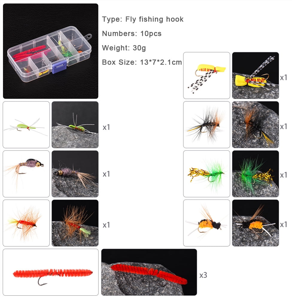 Complete fly fishing kit includes a fly rod, reel with line, 10 flies and a storage bag. 9′ 4-piece carbon fiber rod with cork handle and aluminum reel seat. Lightweight, strong ABS reel spooled with fly line. 10pcs flies are well packed in a transparent box. Water-resistant canvas bag with removable, adjustable shoulder strap.