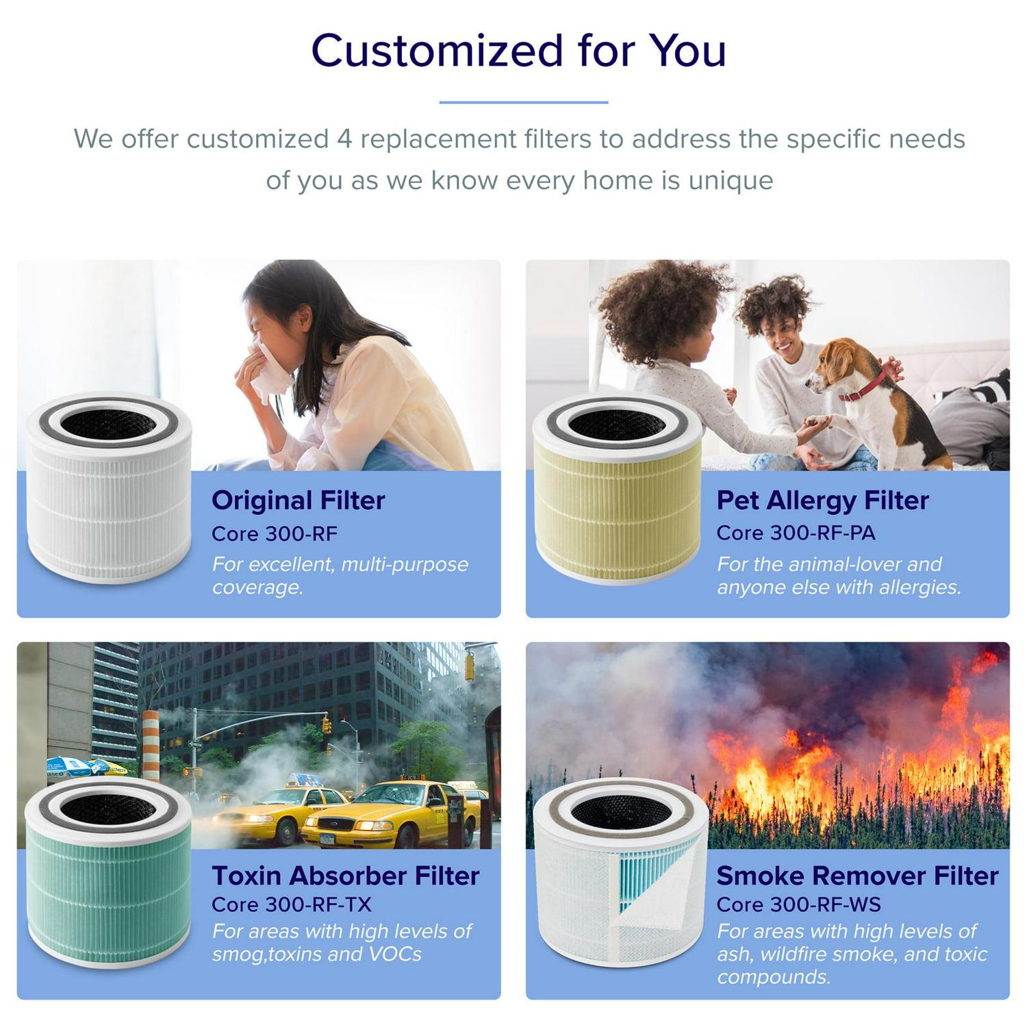 – Multiple Filter Replacement Options: Original, Pet Allergy, Smoke, Toxin