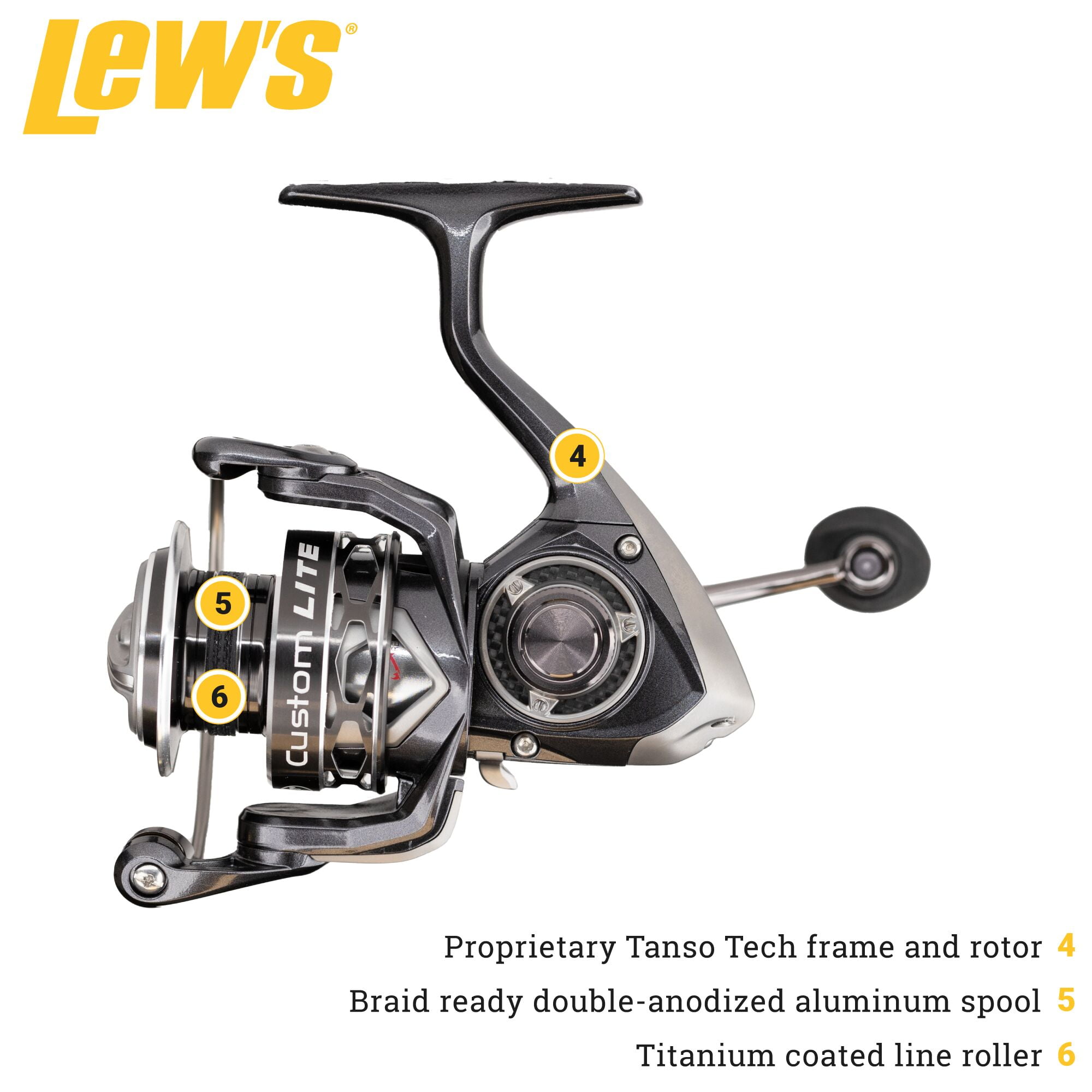 Lew’s Custom Lite Spinning Reel boasts compact dynamism, delivering the powerful performance expected from Lew’s Custom Lite reels at a slightly reduced reel size. A proprietary Tanso Tech frame and skeletal rotor are lightweight and strong, housing 11 premium stainless steel bearings and a precision-machined aluminum drive gear, promising seamless operation day in and day out. An ultra-smooth hybrid carbon drag system supplies steady strength and a braid ready, double-anodized aluminum spool is able to easily handle pressure from all line weights and types. The long-lasting titanium coated line roller provides enhanced durability and reduces friction while the reversible, machined aluminum handle with EVA Pro knob offers a customized, comfortable experience.