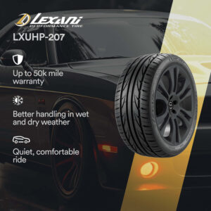 The Lexani LXUHP-207 is an ultra-high-performance all-season tire that’s designed for sports cars and offers drivers year-round performance, consistent vehicle handling at high speeds, and a 50,000 mile limited manufacturer tread life warranty.