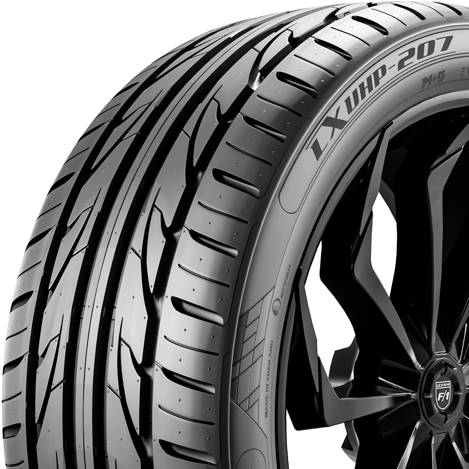 The Lexani LXUHP-207 tire is an all-season high performance tire for sedans and sports car drivers who are looking for stability, year-round traction, and comfort. It features a unidirectional tread pattern which enhances performance. It has an arrow on the side of the tire which indicates the direction of rotation and must be mounted correctly on the wheel for safest operation. The lateral grooves ensure a stable driving experience and good handling on wet road surfaces by pumping water through the wide open v-shaped tread grooves. The highly-advanced construction of this tire allows it to last longer while generating extremely low noise. Lexani produces the highest quality tires which have a combination of style, luxury, and performance at low prices.