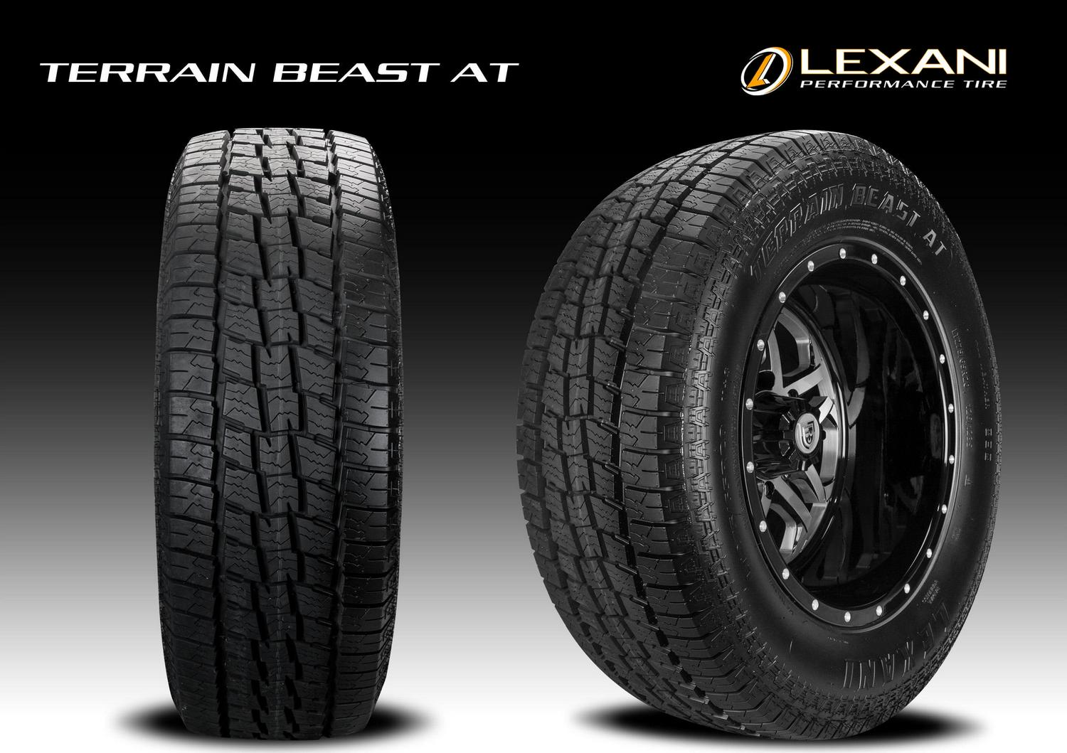 The Lexani Terrain Beast AT is an all terrain, all season tire manufactured for SUVs and light trucks. The tire promotes great all weather traction. The tread design and the all season tire compound work together to increase the dry, wet and winter weather road gripping ability. The special compound maintains the tire’s flexibility including in colder temperatures, while the tread elements find good grip even on ice and snow-covered road surfaces. The wide grooves and open shoulder design prevent hydroplaning by eliminating water and slush from below the tire’s footprint. The special tread design also keeps the footprint clean at all times. It eliminates snow stuck between the tread elements to improve the traction and performance year round. The unique tire compound and detailed tread design also improve the all terrain traction. As a result, the tire performs well on soft, loose and uneven terrains. The staggered tread blocks and deeper siping detail find grip on all surface terrains and ensure a safer driving experience. The special block design and the wide grooves eliminate mud and eject rocks from the tread grooves. This keeps the tire’s the road surface grip, while also actively resisting stone retention, which can cause harm to the tire’s casing and structure. The safer drive ensures better performance on all road terrain surfaces. The model’s tread design ensures excellent controllability. The block rib design and the solid shoulder blocks enhance its steering responsiveness and driving stability. The unilateral center rib maintains the tire’s road contact on all terrain and road surfaces, which stabilizes the tire’s structure against the driving pressure affecting it, while increasing the steering responsiveness and accuracy to the driver’s commands. The result is a safer year round and all terrain driving experience. The specialized tread design also manages to extend the tread life. The tire’s unique compound is damage resistant and it’s capable of handling the harshest off-road conditions. On the other hand, the tire’s tread design ensures even wear across the tread area by managing to equally distribute the driving pressure along the tread area. The longer lasting even tread wear promotes an extended tire usability, making the model more cost efficient. The Terrain Beast AT ensures a quiet on-road drive. The tread design manages to channel the airwaves through the tire’s footprint and prevents them from coming into contact with the tread elements. The airwaves don’t touch the tread elements in this manner, which prevents road and tread pattern noise from forming. The decreased road noise levels ensure a quiet and comfortable on-road driving experience in all weather.