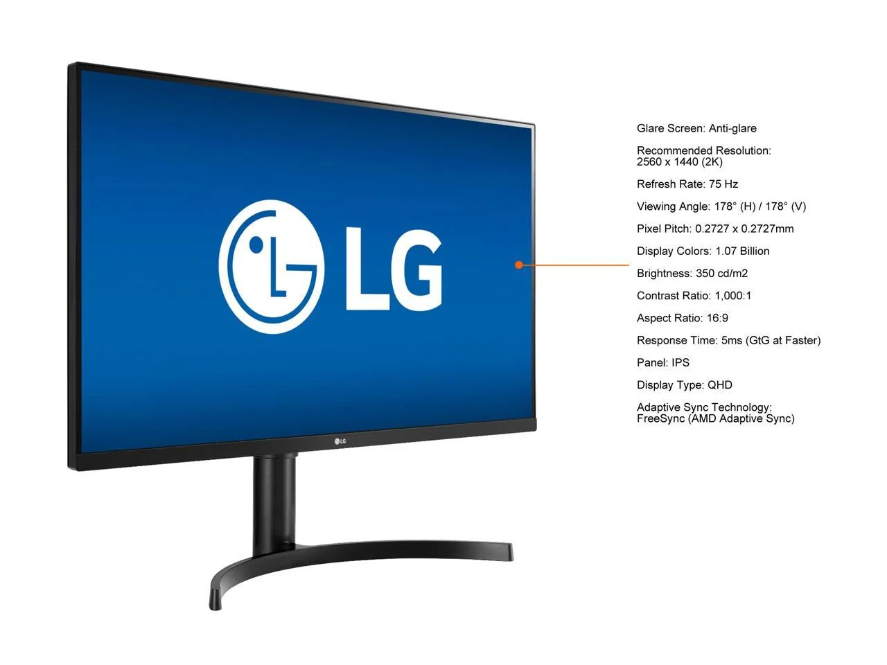 32″ QHD IPS Monitor | Lifelike color with IPS and QHD resolution Upgrade productivity with the IPS Display. At 32″ and 2560×1440 resolution, LGs QHD IPS Display features realistic, accurate color and enhanced contrast, clarity and detail at wide angles. Whatever the task, get it done fast. HDR10 | HDR10 with bright color coverage See HDR10 content, backed by 350 nits of brightness. HDR10 delivers a dramatic visual experience and elevated picture quality, while enhancing the color of HDR content. This combines with wide color coverage of the P3 90% color gamut. A true difference in color and brightness. Color Calibrated | View actual color It is color calibrated to help maintain accurate color on the screen, so it preserves the original intend color. Reader Mode | Less blue, improved visual comfort Reducing blue light to help lessen eye fatigue, Reader Mode provides optimal condition for reading. With just a few movement of joystick control, you can more comfortably read your monitor screen. Flicker Safe | Reduces visual fatigue Flicker Safe reduces the onscreen flicker level to almost zero, which helps protect your eyes. User can comfortably work throughout the day. AMD FreeSync™ | AMD FreeSync™ and more gaming features Play as hard as you work with faster, smoother gaming tech. AMD FreeSync reduces image tears and choppiness with more efficient communication between monitor and graphics card. While gaming tech gives you the advantage – Black Stabilizer enhances vision, Dynamic Action Sync improves response and gaming modes customize your experience. Dynamic Action Sync® presents action as it happens Get the closest thing to real-time gaming. Dynamic Action Sync elevates your gameplay for a pro-level experience. Respond to action, opponents and every moment with minimized input lag and unbelievable performance. See detail in the darkness with Black Stabilizer® Youre gameplay is never in the dark. Black Stabilizer is your ally to attack or defend against enemies hiding in the shadows. It delivers a pro-level gaming experience for enhanced vision and a jump on the competition. A monitor that adjusts to you Choose your setup in seconds. Save space with the wall mount or turn to the curved, stable and modern design of its Edge-ArcLine stand. With a simple press-and-click, you can adjust the tilt and height for perfect viewing.
