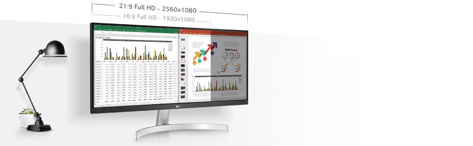 Elevate your home office equipment – The 21:9 UltraWide™ Full HD resolution (2560×1080) offers 33% more screen space compared to Full HD resolution display. Enjoy Webinar with viewing larger materials and more attendees, thanks to the screen. Online classroom with wide field of view – Easily manage textbooks, lectures, conversations and searches in a single view and turn the wide screen into your favorite online classroom. Stop Alt-tabbing and start viewing side-by-side – Enables you to work with reports at a glance with datasheets and slides side by side without repeating Alt-tab. Unbelievable picture quality – Bright and bold. VESA DisplayHDR™ 400 brings work and virtual worlds to life, backed by 400 nits of brightness. This display tech elevates textures, elements, character movements and natural light and shadow. The specs you want for realism and beyond – Widen your view and precise color performance. The IPS Display produces realistic, accurate color at wide viewing angles. This combines with sRGB 99% Picture Mode, an incredibly accurate color gamut for creators, and VESA DisplayHDR™ 400 that brings animations, video and gaming to life with an experience that surpasses reality. Boost your experience with MAXXAUDIO – A content experience with a rich sound and smooth picture. MAXXAUDIO delivers in stereo with two channels at 7W each, enriching your gaming and video content experience. Control with a few clicks – You can customize the workspace by splitting the display or adjusting basic monitor options with just a few mouse clicks. Easy viewing, comfortable reading – Watch your monitor for longer periods of time. Reader Mode provides optimal conditions for reading by reducing blue light, while Flicker Safe dimming technology minimizes flicker that can cause eye fatigue. Watch longer and more comfortably. Smooth, confident motion – AMD FreeSync™ technology puts an end to choppy playback and broken frames with fluid, artifact-free performance at virtually any framerate. Innovative design from the #1 UltraWide monitor brand in US – Meticulously engineered. LG UltraWide Monitors are created to frame up your work in a clean, sleek, minimal design. No wonder they’re the #1 UltraWide monitor brand in the U.S. for three years running*. Whether curved or flat, LG UltraWide Monitors are crafted to complement and maximize your experience with a three-sided virtually borderless design, adjustable ergonomics and overall aesthetic that elevates any desktop.