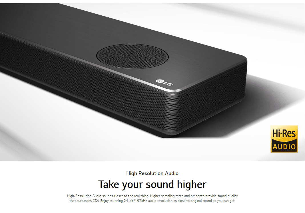 Meridian Audio Advanced Technologies -Hear more with MERIDIAN. All-encompassing sound, uncompromising performance. LG partnered with Meridian Technology, pioneers of High-Resolution Audio, to combine advanced signal processing and refined hardware design. The result is an expanded soundstage with greater height, width and depth. Dolby Atmos- Experience how powerful sound can be. Dolby Atmos envelops you in sound. Originally created for the cinema, Dolby Atmos pairs with up-firing height channels so you hear every note, every sound and every word in stunning clarity. It’s powerful, moving audio that flows all around you, even overhead. 7.1.2 ch Surround Sound Expansion. Immerse yourself in sound. Hear sound all around you. Wirelessly pair with additional surround sound speakers for a full cinematic audio experience. 2.0 ch Rear Speaker Kit expansion delivers audio from behind for greater depth and immersive surround sound. High Resolution Audio-Take your sound higher. High-Resolution Audio sounds closer to the real thing. Higher sampling rates and bit depth provide sound quality that surpasses CDs. Enjoy stunning 24-bit/96kHz audio resolution — closer to the original sound. Just say, “OK, Google. Simple, easy voice control. With the Google Assistant built-in, control your sound bar, entertainment center and connected home using nothing but your voice. AI Room Calibration- Optimal sound in any environment. Room calibration uses spatial awareness technology to measure your room’s unique characteristics. It then balances the sound bar audio settings to the environment. It’s immersive sound with a more accurate sweet spot, heard as it was meant to be — naturally and accurately. AI Sound Pro-Audio that adapts to what you’re watching. News. Sports. Drama. LG’s AI Sound Pro uses adaptive sound control to automatically adjust sound levels, bringing out treble or bass based on what you’re watching. From powerful action to dramatic dialogue, hear your entertainment with crystal-clear, detailed audio. HDMI eARC-Connect to the best sound quality possible. Get better sound from a simpler setup. With HDMI eARC, you can enjoy a higher bitrate, Hi-Res content and uncompressed Dolby Atmos® audio with just one cable. There’s no need for multiple HDMI ports. Connectivity-See how simple premium sound can be. Pairing is effortless. Bluetooth® technology and new HDMI eARC* combine for the best sound quality possible and simple connectivity. Enjoy easy control with the Google Assistant* and Google Chromecast*.