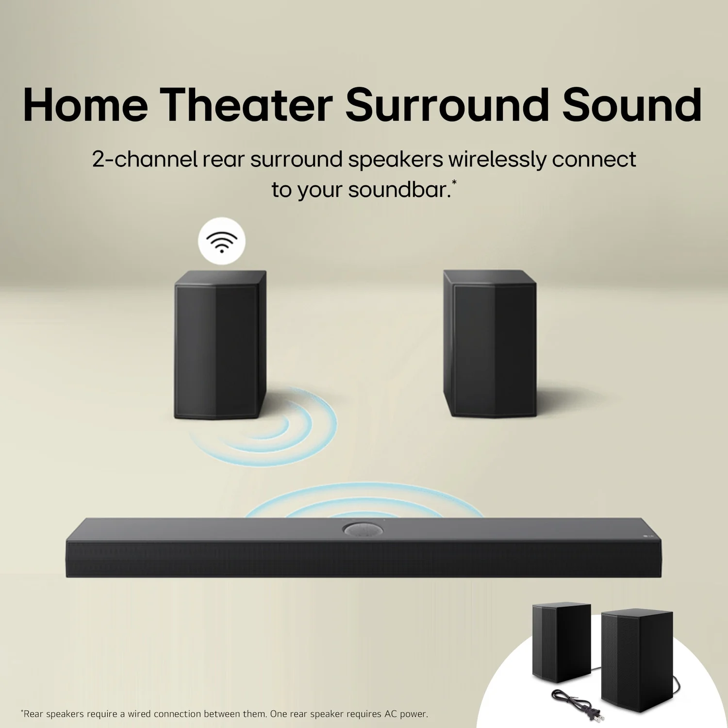 Give movie night a boost with this 5.1ch LG Soundbar, powered by Dolby Audio™*. *Dolby, Dolby Atmos and the double-D symbol are registered trademarks of Dolby Laboratories. Our new up-firing rear speakers have true wireless connectivity—no special receiver needed. LG’s new crest design gives the soundbar a sleek and stylish look.