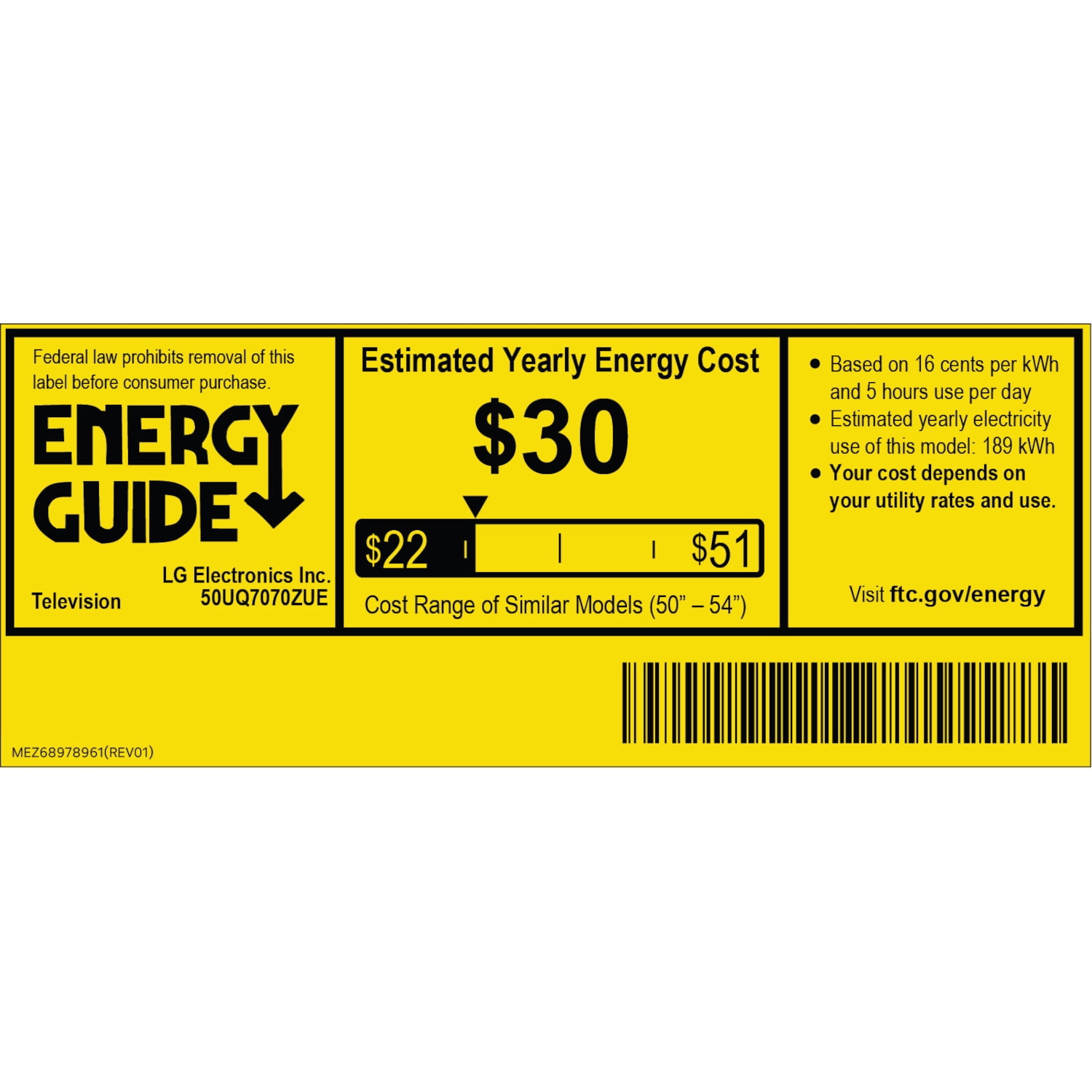 LG 50” 4K UHD Smart TV 2160p webOS, 50UQ7070ZUE