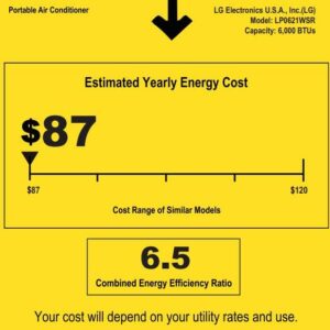 LG 6,000 BTU (DOE) / 8,000 BTU (ASHRAE) Portable Air Conditioner, Cools 250 sq ft (10′ x 25′)
