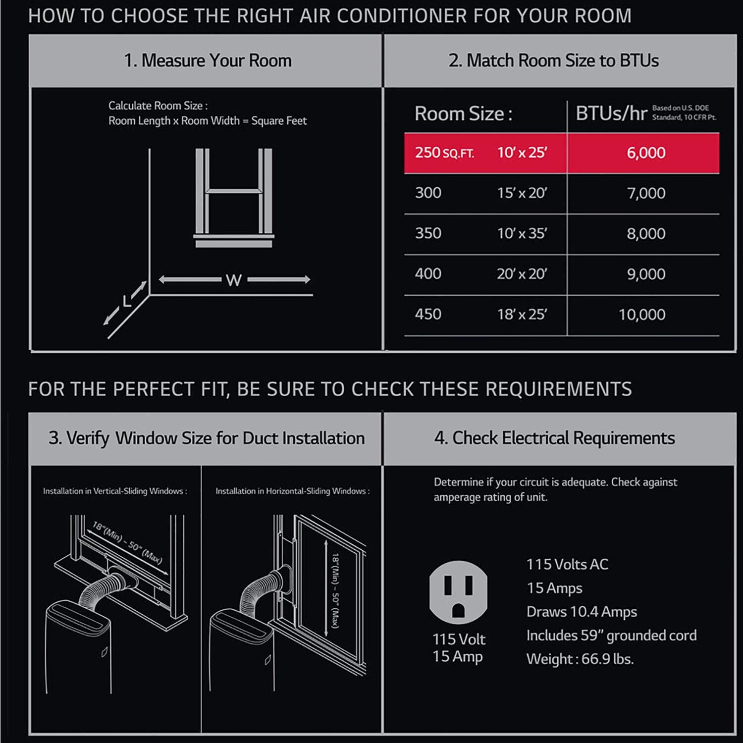 – COOLS ROOMS UP TO 250 SQ. FT. – LP0621WSR is ideal for cooling medium rooms (10 ‘X 25’)