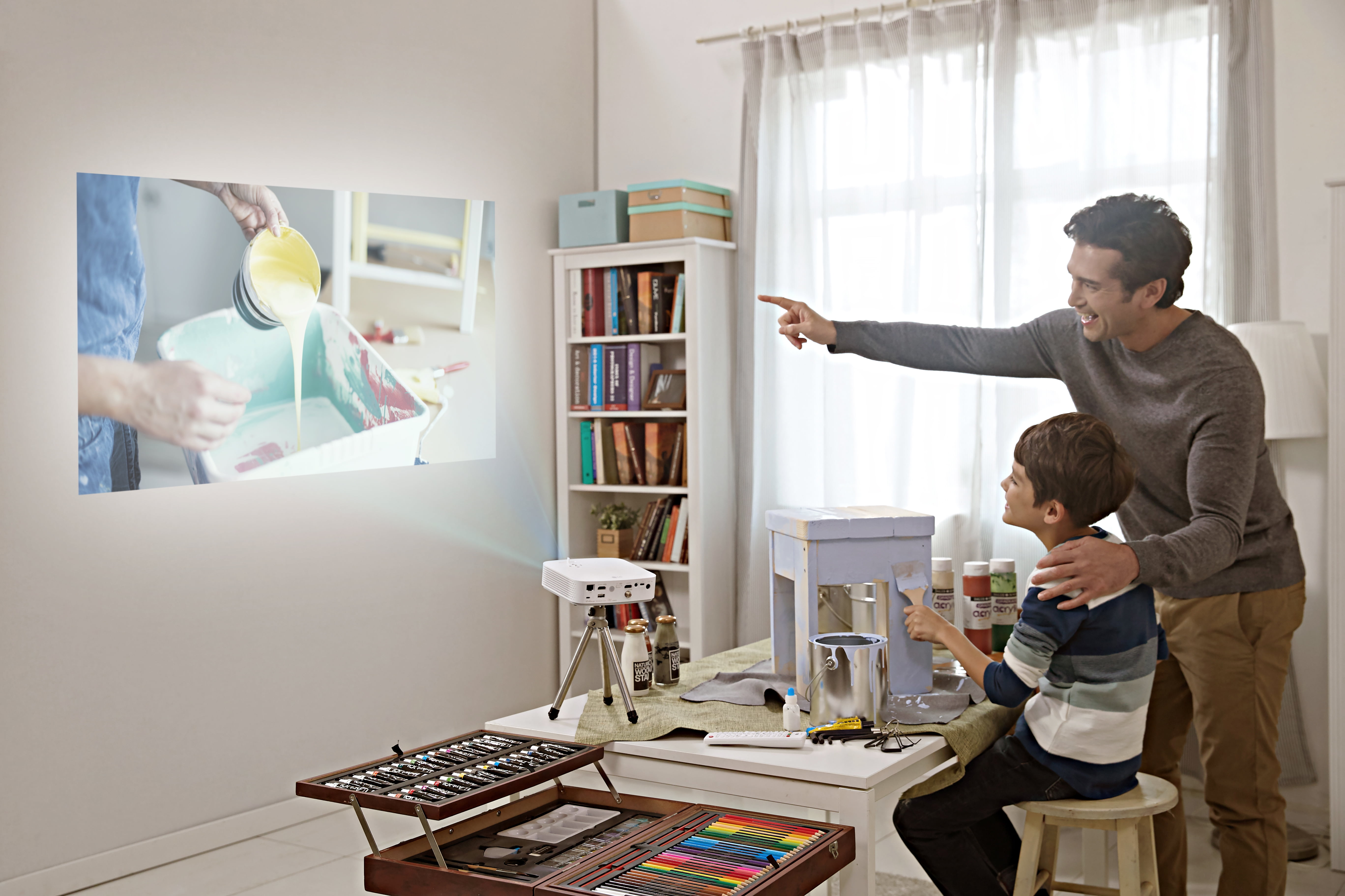 Watch tech and lifestyle expert Justin Tse spend some time with the PF50KA Full HD portable projector and see how the projector can deliver up to two-and-a-half hours* of Full HD video at up to 100-inches screen size.
