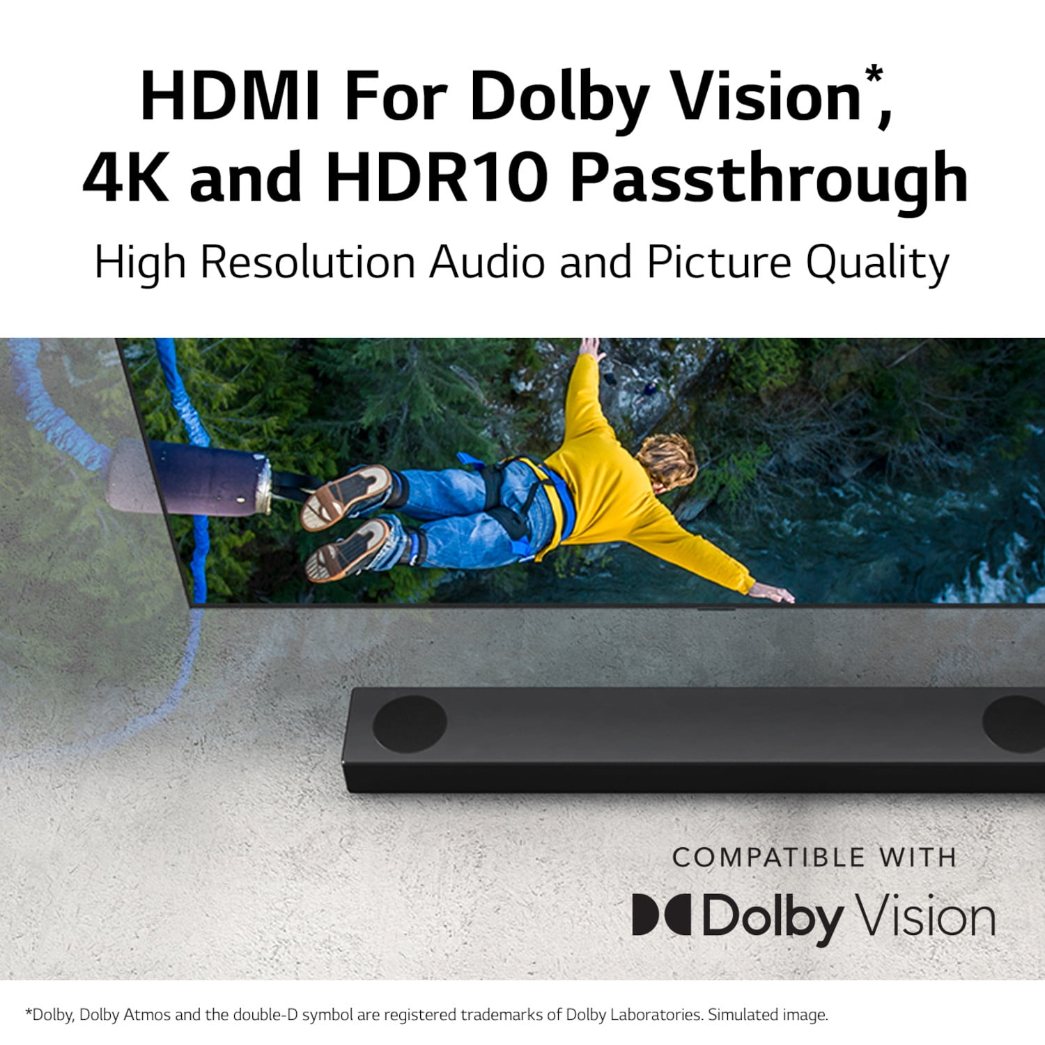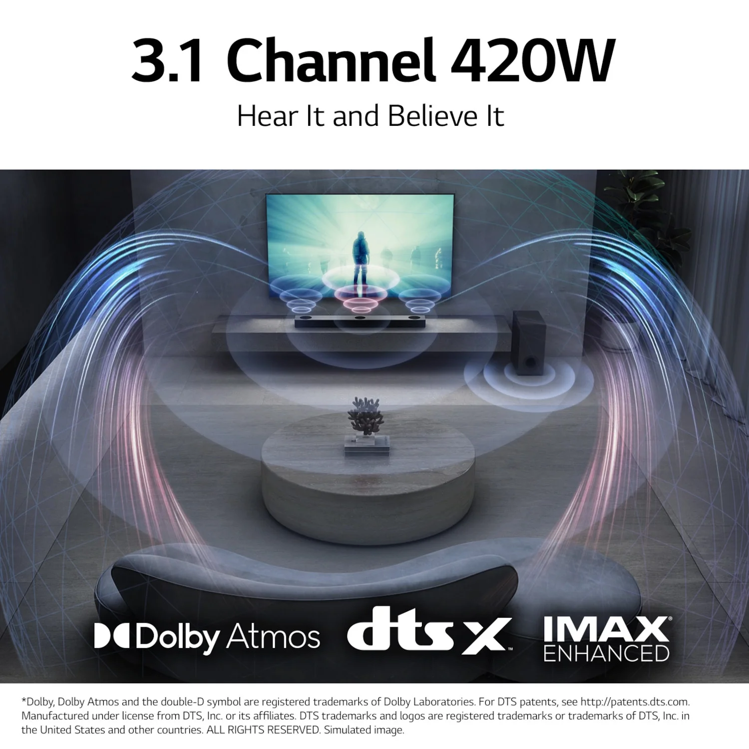 Experience an amazing, premium sound system that features the world’s first sound bar with up-firing center channel for crystal-clear dialogue and a powerful subwoofer that is sure to bring out the goosebumps. This is the S90QY 5.1.3 ch sound bar from LG. Immerse yourself in a stunning sound experience with 5.1.3 channels—including the world’s first sound bar with up-firing center channel that lets you hear every piece of dialogue clearly—and 570W for an impressive home theater sound setup. Add a new dimension of sound that makes you feel like you’re in the action with Dolby Atmos¹ or DTS:X² to bring immersive sound to your room—including up-firing height channels to deliver powerful, moving audio that flows all around you, even overhead. No matter what you’re watching or listening to, you can easily switch between your soundbar’s sound modes through your TV remote to optimize audio and dialogue. Additionally, the new LG WOWCAST³ brings an installation experience that connects your TV and soundbar wirelessly for a sleek look, without any lag or loss in sound quality. Finally, Connect your favorite streaming device, 4K Blu-ray player or gaming console to your sound bar with an HDMI cable and keep the same high resolution audio and Dolby Vision™¹ picture quality you love. 1Dolby, Dolby Atmos and the double-D symbol are registered trademarks of Dolby Laboratories 2For DTS patents, see . Manufactured under license from DTS, Inc. or its affiliates. DTS trademarks and logos are registered trademarks or trademarks of DTS, Inc. in the United States and other countries. ALL RIGHTS RESERVED. 3WOWCAST requires a USB and HDMI connection to TV.