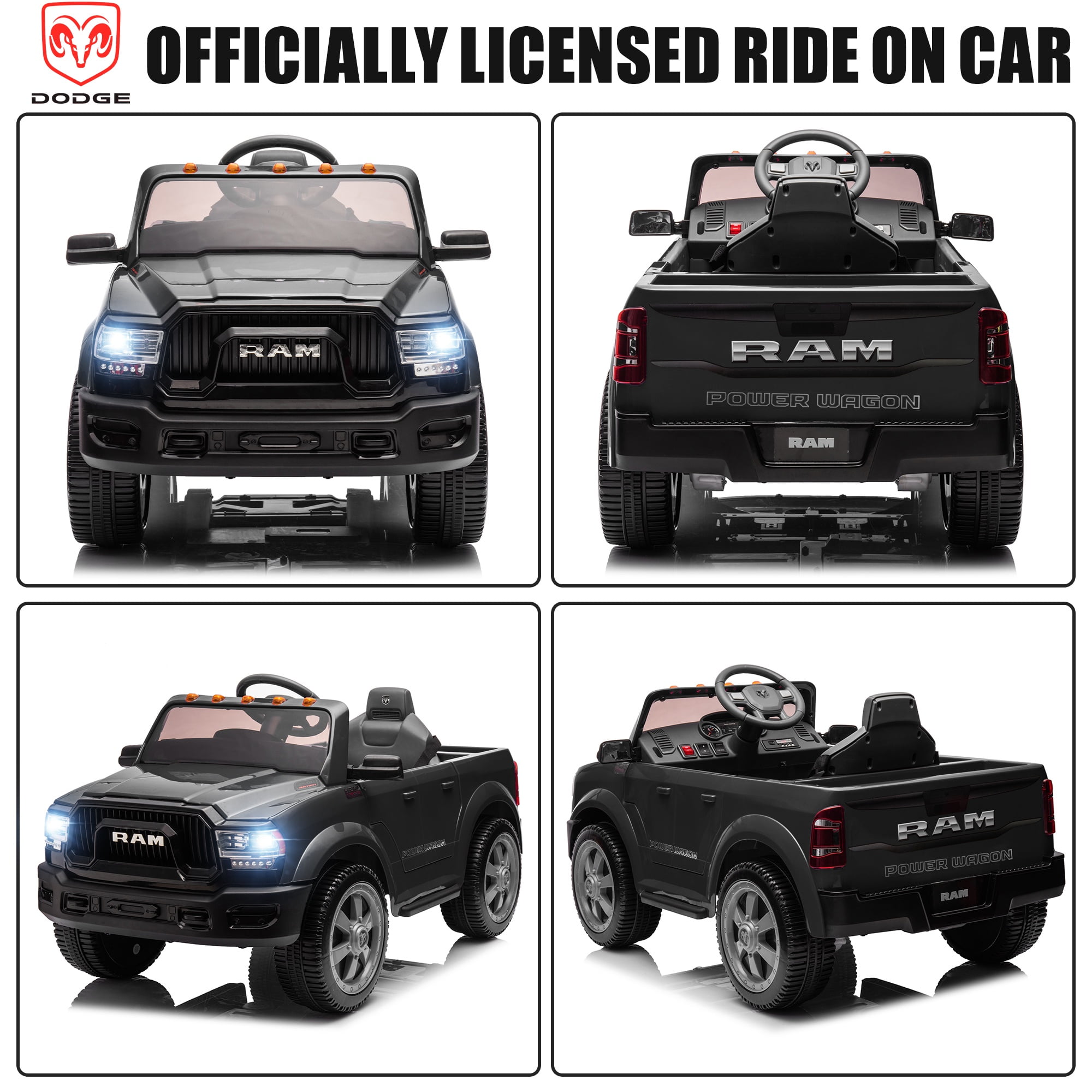 Licensed Dodge RAM 2500 Electric Ride on Vehicle for Kids, 12V Powered Ride on Car Toys with Remote Control, LED Lights, Bluetooth, MP3 Player, Black