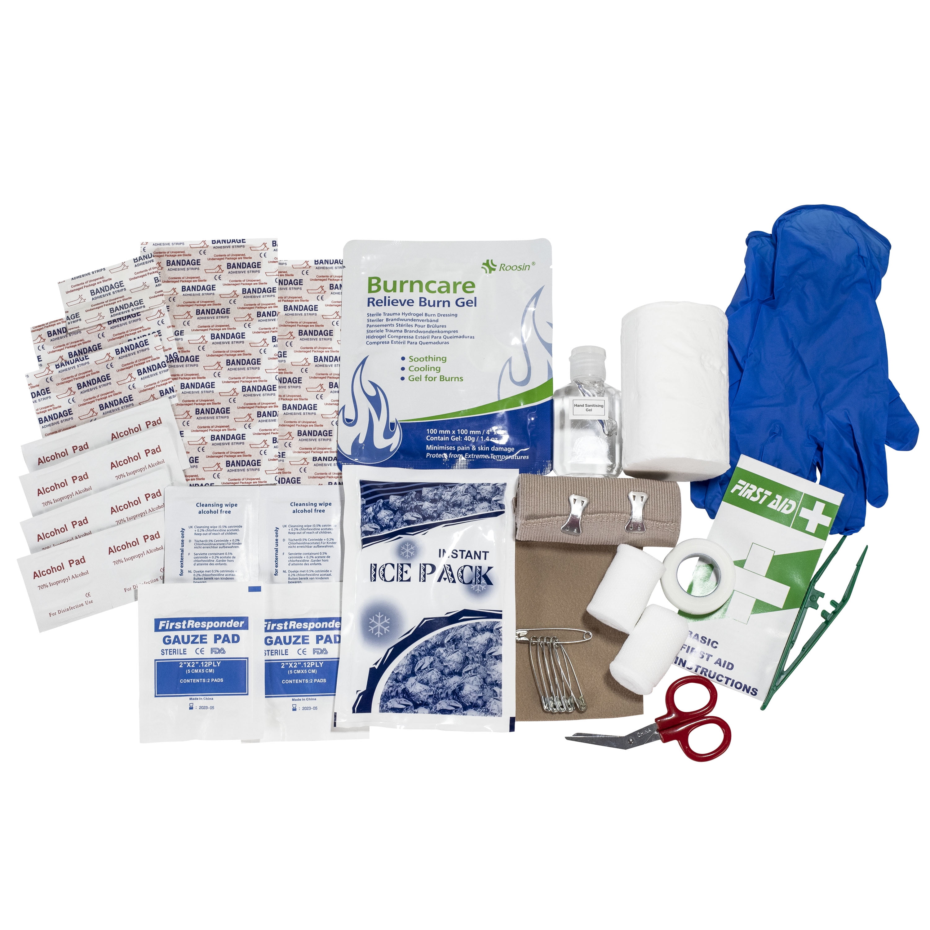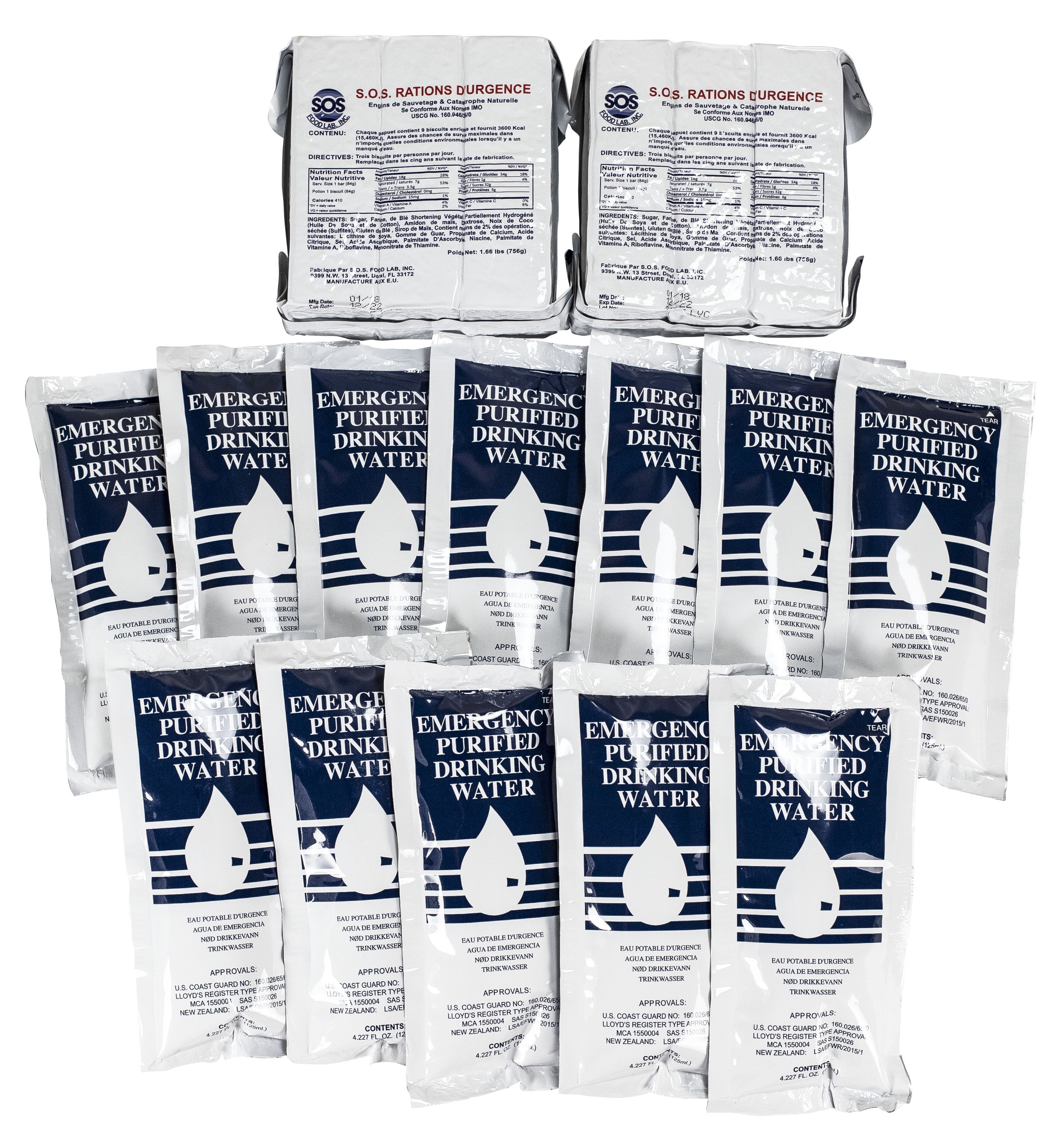 Two Person Waterproof 72 Hour Premium Survival + Emergency Dry-Bag Backpack Kit Waterproof dry bag backpack 20.5″ Tall. Three days of water and food that have a shelf life of 5 years. Tent, blankets, ponchos, tools, and matches First aid kit, flashlight, glow sticks, and more components 72 Hours Food and Water for 2 People 2 3600 Calorie Food Bars 12 X 4.225 OZ Water Packets Shelter 2 Clear Emergency Ponchos 2 Silver Survival Reflective Blankets Lighting 1 Dynamo Kinetic Flashlight 1 Plastic Flashlight Fire Start & Safety 1 Content List 40 Waterproof Matches Burn Gel Waterproof Dry Bag with Carrying Straps First Aid Contents 10 Bandage, Adhesive 1 x 3 2 Bandage, Knuckle 2 Butterfly Closures 2 Conforming Stretch Gauze, Non-Sterile, 2″ x 5 yards 1 Pair of Glove, Nitrile, Large, Non-Sterile 2 Bags Gauze Pads, Sterile, 2 x 26 Safety Pins 5cm 1 Tape 1/2 x 10 Yards, Plastic 1 Plastic Tweezer 12.5 cm 1 Hand Sanitizer 59 ml 1 Quick Reference Guide 1 Cold Compress 1 Ace Bandage 1 Scissors 1 Toilet Paper Small Roll 8 Alcohol Pads 2 Disinfecting Cleaning Wipes 1 Moleskin Survival Items 1 Paracord 15 Feet 1 5-in-1 Tool, Whistle 1 Multi-Blade Tool Knife Mini Roll Duct Tape 20 Water Purification Tablets