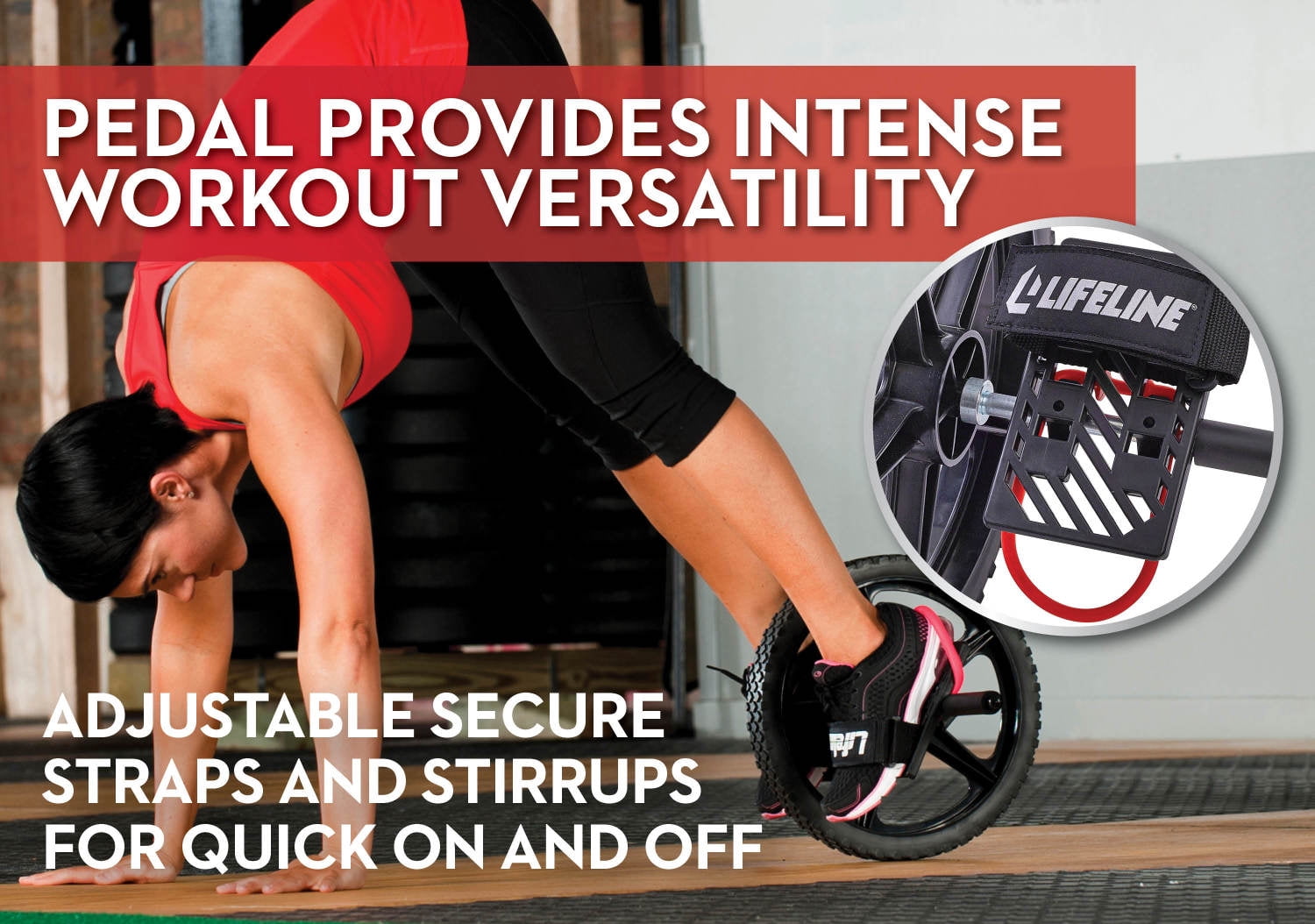 Dubbed ?the Ab Miracle Worker” by Men’s Health, the Lifeline Power Wheel engages hips, lower back, obliques and abdominal muscles for the functional strength, balance and correct posture needed for daily activities, work and athletic performance. The patented Lifeline Power Wheel’s revolutionary design allows you to place your hands shoulder width apart on the soft foam grips or place your feet in the adjustable foot stirrups allowing for greater body motion and workout versatility. The design utilizes more range of motion than traditional ab rollers or traditional core exercises to allow for more exercises for the moderate to a very advanced user. Move in any direction or hold positions to develop body control and hit stabilizer muscles during upper and lower body moves all while targeting core muscles. By allowing you to move in more than one plane of motion, functional training increases strength, improves balance and decreases your risk of injury when compared to fixed form movement. Using this Lifeline Power Wheel, in conjunction with functional training, will assist in increasing joint mobility and stability as well as developing more efficient motor patterns. Exercise option examples include pushups, crawls, pickups, leg lifts, leg curls, ab roll outs, crawls and knee to chest movements (Many more exercise options).