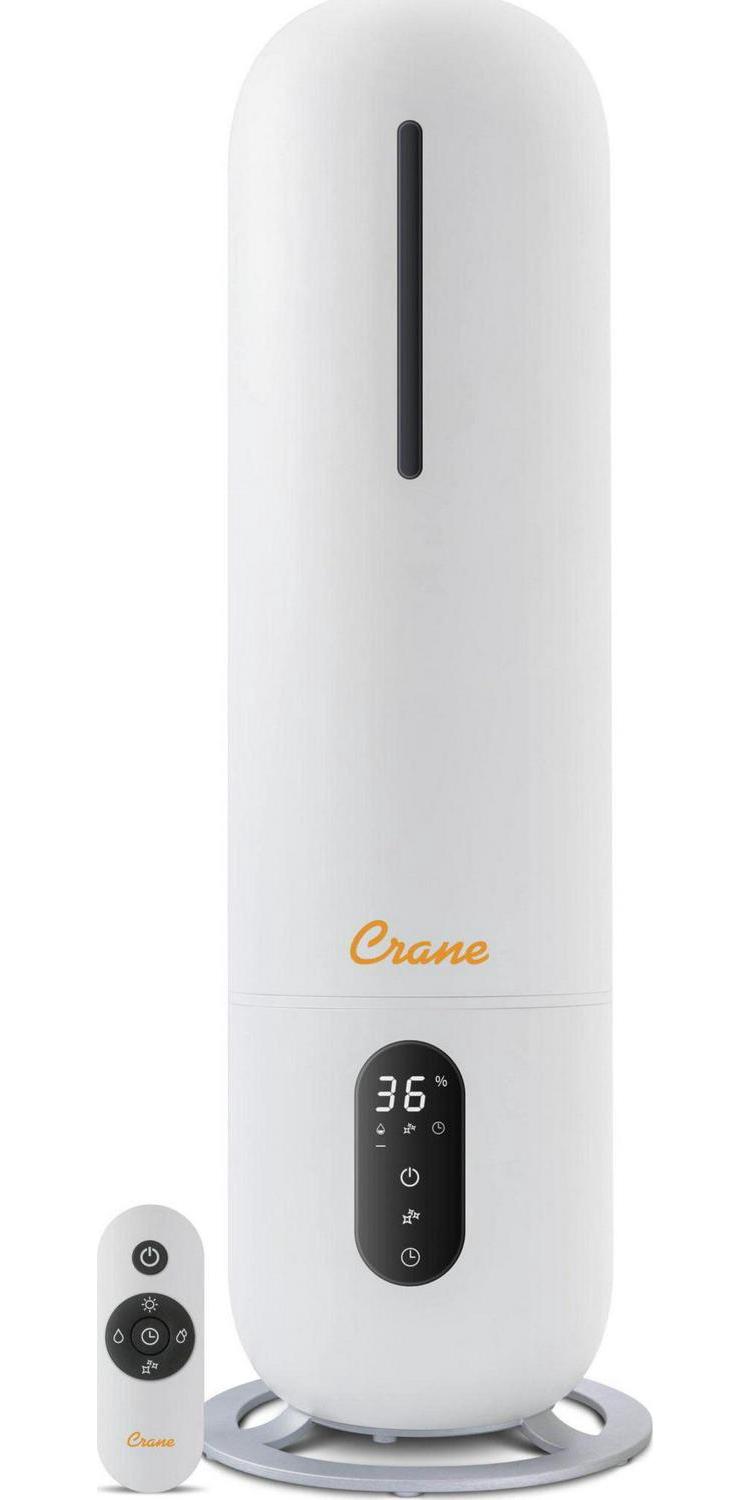 – “One heat setting 700W Overheat protection. On/off switch. Adjustable thermostat control. Mechanical control Black design Built-in handle for easy portability Stable base legs ETL safety certified Electric | VARIABLE SPEED SETTINGS: No matter the humidity level you would like to achieve we’ve got you covered, the Crane USA top fill cool mist humidifiers offer variable output settings, an adjustable 360° mist lid, and an included remote control, the mist output is perfect for humidifying rooms up to 500 sq. ft., which is a standard medium to large sized room. ULTRA-VIOLET IONIZING LIGHT: This humidifier is made with clean control anti-microbial material which reduces mold and bacteria growth by up to 99.96%, this unit also has a built in ultra-voilet ionizer light to sanitize the air in the humidifier and add a freshness to the mist. 2 GALLON TANK: The 2 Gal. tank comes in white and fits under a standard kitchen or bathroom sink, the humidifier is equipped an aroma tray so you can add a great aroma to any room without damaging the humidifier. 48-HOUR RUN TIME: The tower top fill humidifier runs up to 48-hours, so you don’t have to worry about running it through the night, Crane USA’s humidifier runs whisper quiet which makes it the perfect option for light sleepers, kids and especially babies, it also is equipped with an automatic shut-off safety feature that turns the unit off when the water runs out. EASY TO CLEAN: Crane’s easy to clean humidifier design features a detachable top fill tank, which is recommended by health professionals for promoting clean humidifier habits, the top and inner tank are removable, giving you access to clean the entire base, we recommend cleaning the humidifier based on frequency of use and provide many educational resources on how to clean your humidifier. 1-year limited manufacturer warranty included. White”