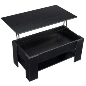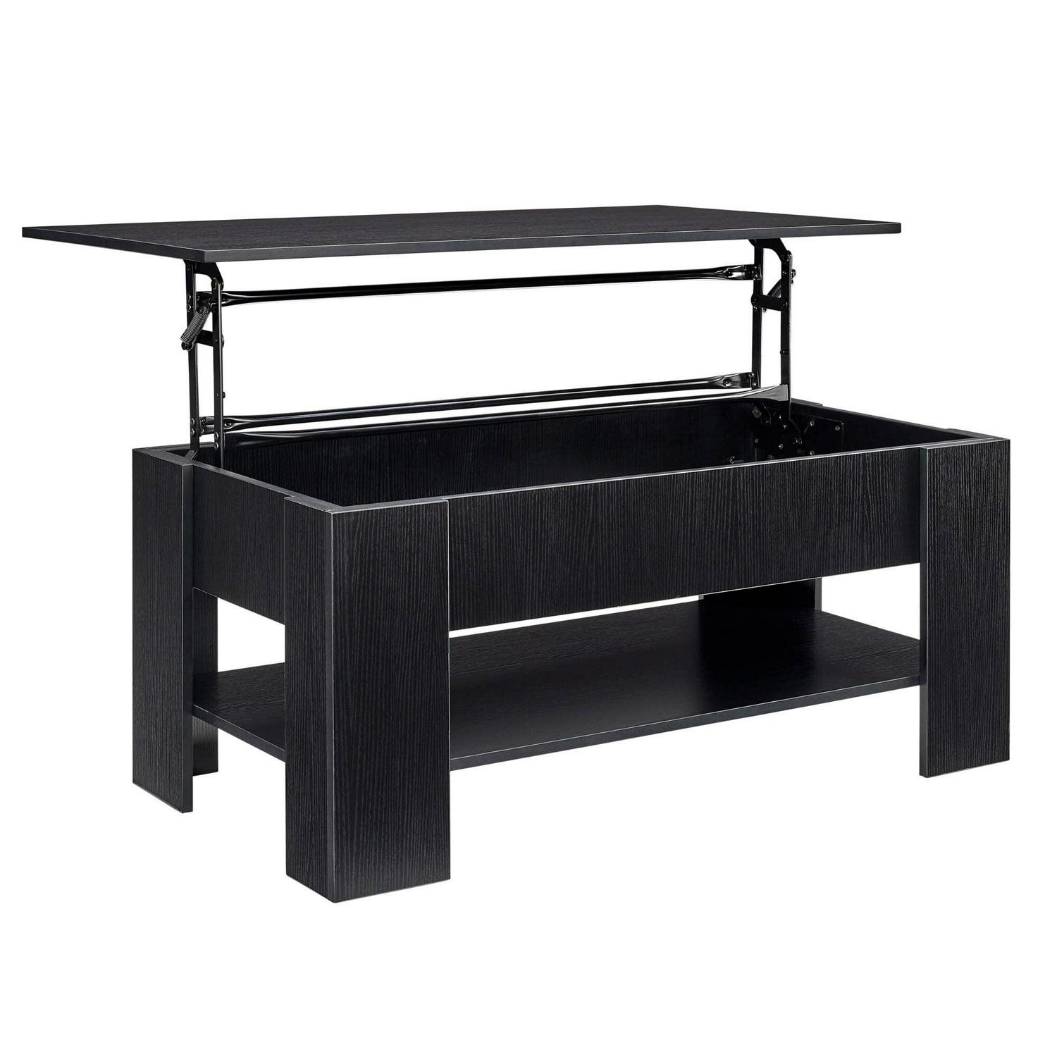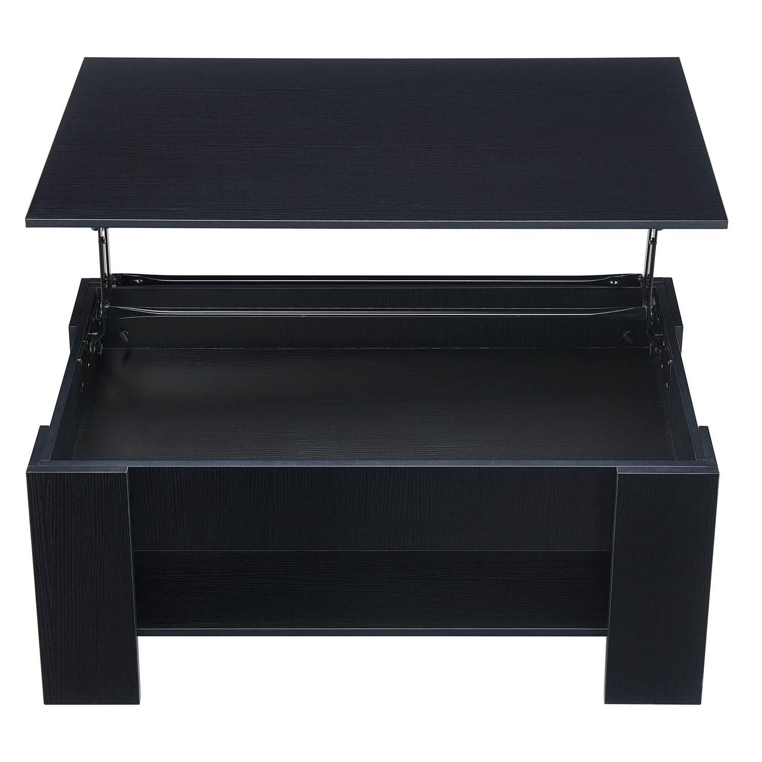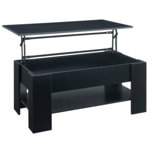 Lifestyle Solutions Cairo Lift-Top Rectangle Coffee Table with Storage, Black Wood