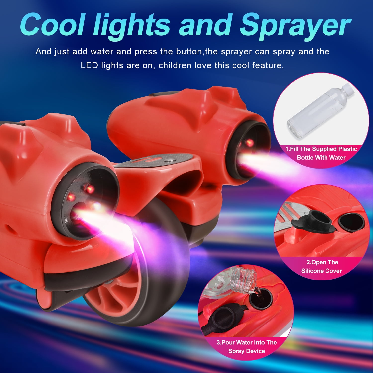 3 Wheel Scooter Kick Scooter for kids with Bluetooth Music Rocket Steam Sprayer Adjustable Height Light Up for Boys Girls Ages 3-10