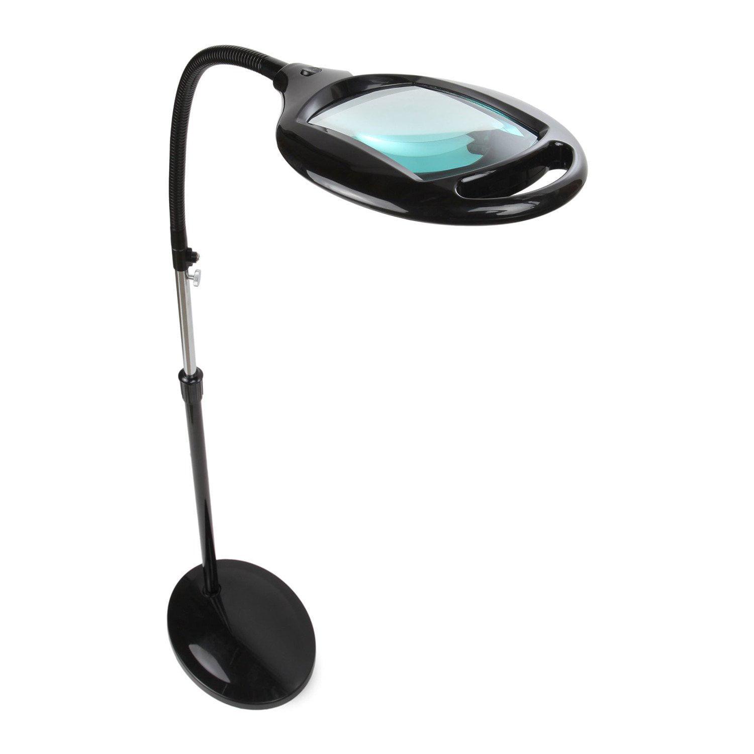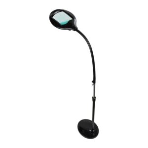 BRIGHTEST READING LAMP ON THE MARKETDesigned for aging eyes, this professional-quality 60-LED floor lamp boasts the largest available magnifier lens, made of authentic diopter glass, with a 15″+ focal range.MAGNIFIES PRINT AND TASK WORK 1.75XOur 3-diopter lens brings renewed clarity to reading, working crossword puzzles, knitting, crocheting, and more! The size of the viewing magnifier lens measures about 6.5 x 4 inches.FLEXIBLE HEIGHT, EASY ADJUSTMENTA gooseneck makes LightView PRO easily adjust to your comfort: height can be modified from 42″ to 55″; an extra-solid metal base firmly anchors your lamp so that the top stabilizes.SUPER-EFFICIENT, STAYS COOLEnergy-saving LED light uses only 9 watts; stays cool for hours, never generates heat or glare of incandescent bulbs. Weighs just under 20 pounds for ease of portability.
