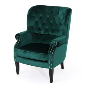 Comfort and style fit for royalty come to your home with the Lillie Velvet Club Chair. This elegant club chair features a traditional design with button-tufted cushions and nailhead trim detailing. Its upholstery is made from soft velvet and is offered in a choice of available colors. Its gently curved back and ample armrests provide ergonomic seating, and its plush cushions offer the ultimate relaxation experience. You can place this chair just about anywhere, from the lounge to the bed chambers. Just beware – once you’ve sat down in it, you won’t want to get up!
