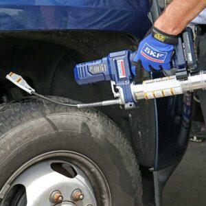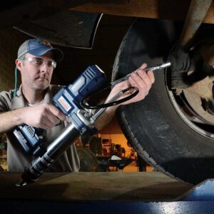 – The grease gun’s 3-point base keeps it upright and stable, and its light weight and comfortable grip reduces fatigue and makes lubricating easier