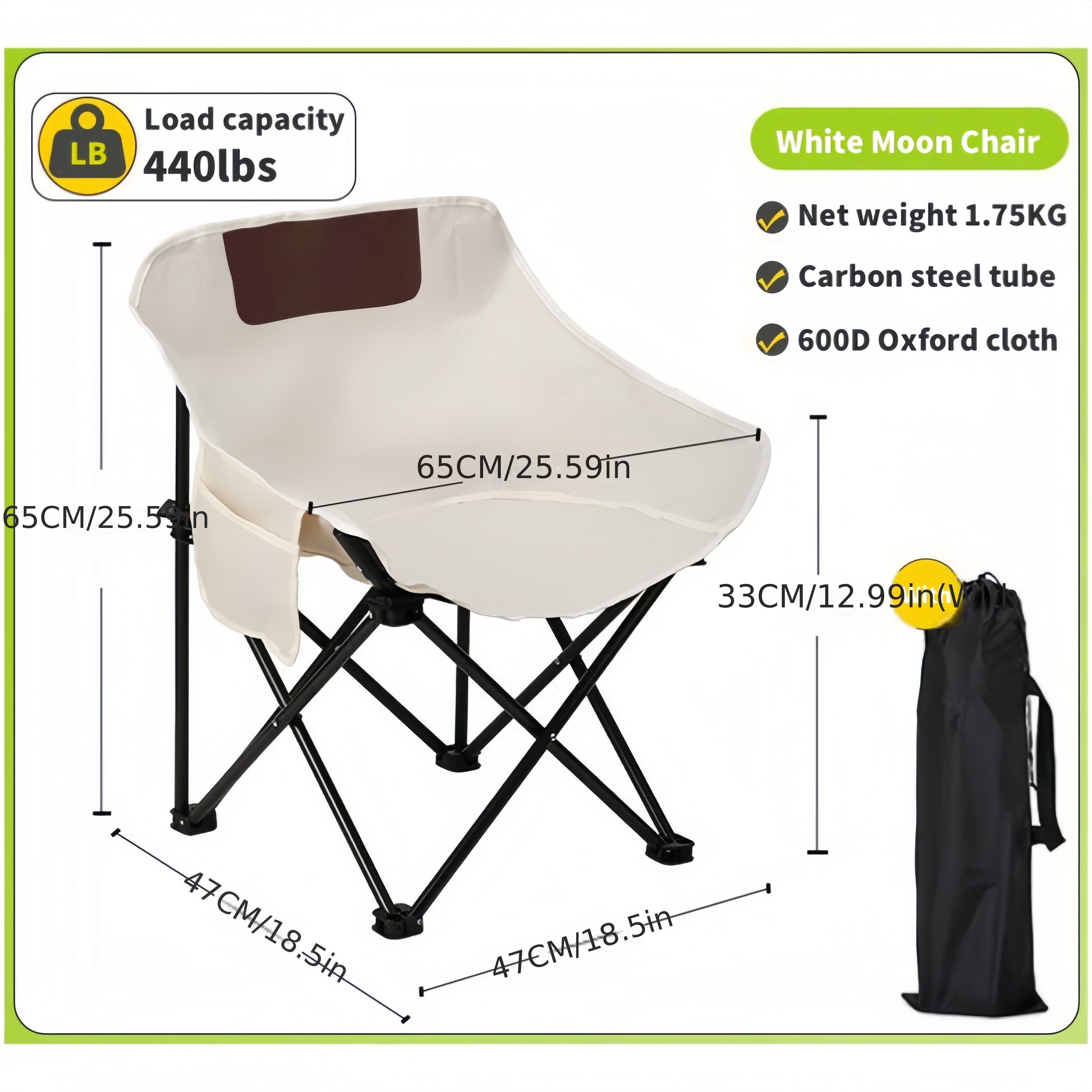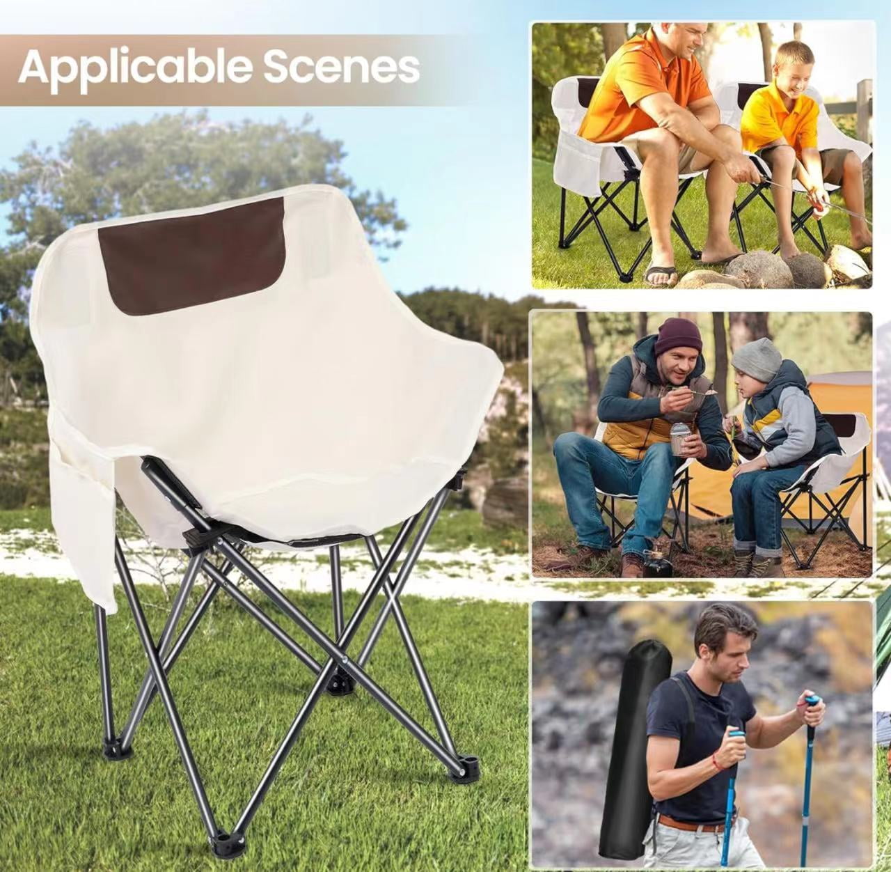 LING RONG Portable Folding Chair,Lightweight Camping Chairs with Side Pocket and Carry Bag for Adult Hiking Fishing Beach, White