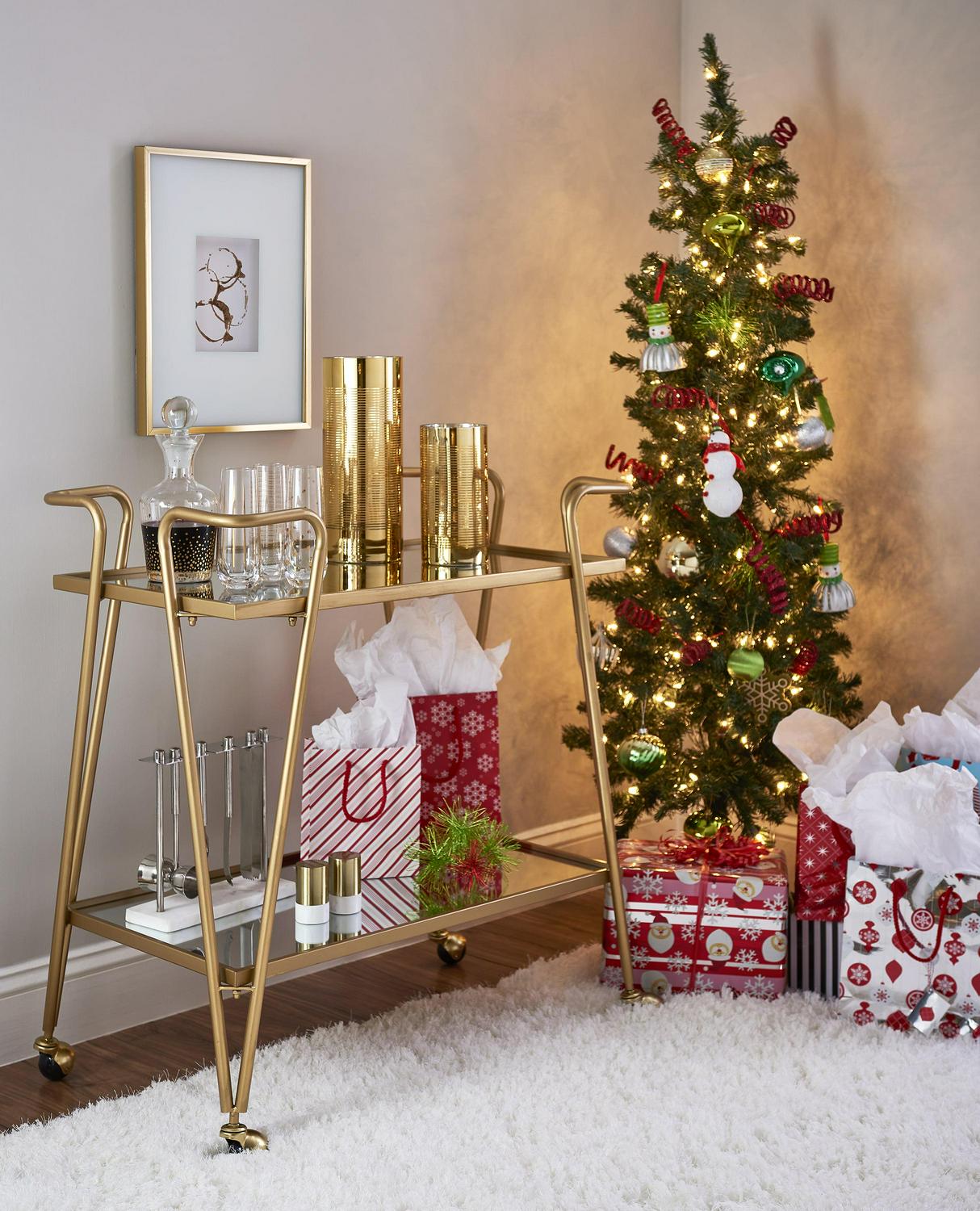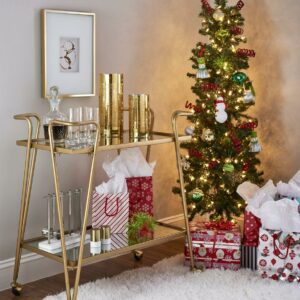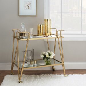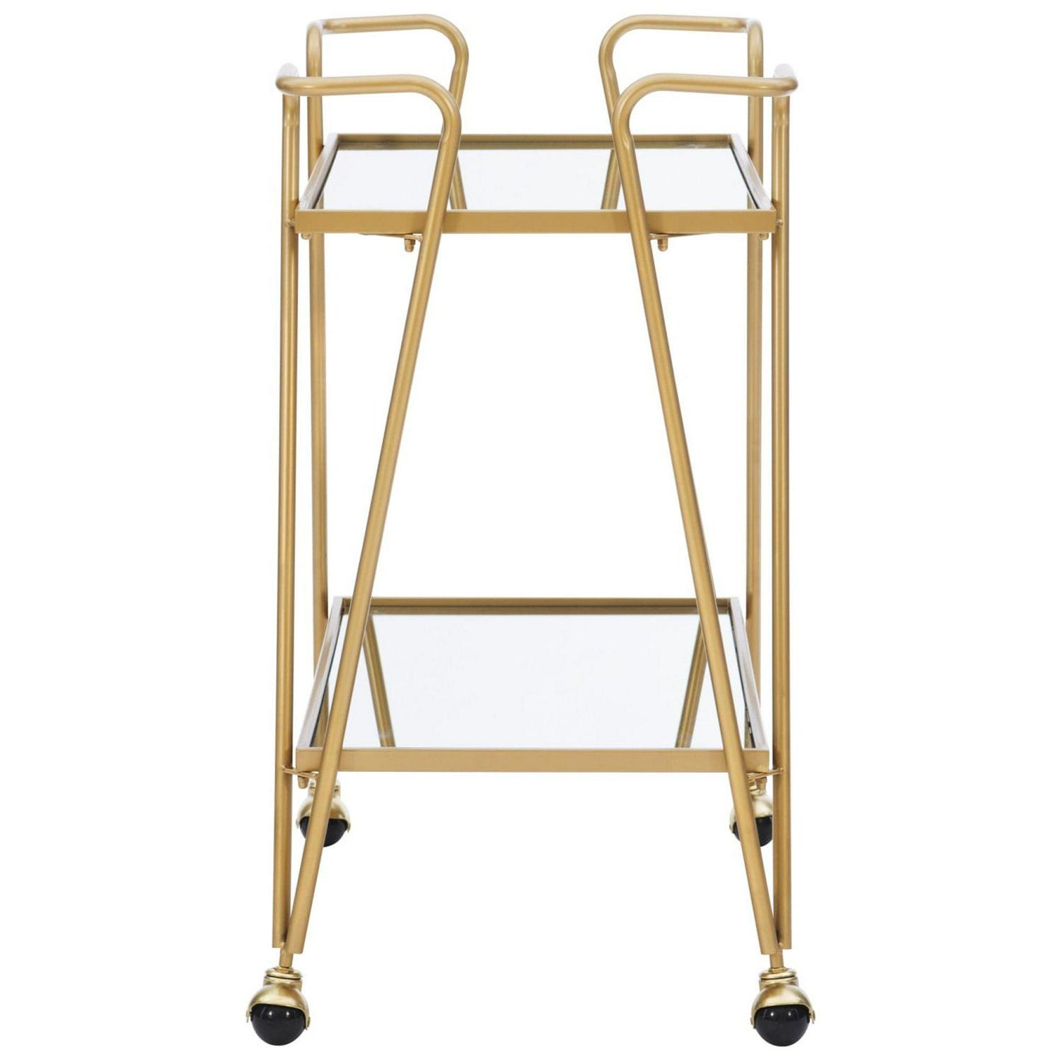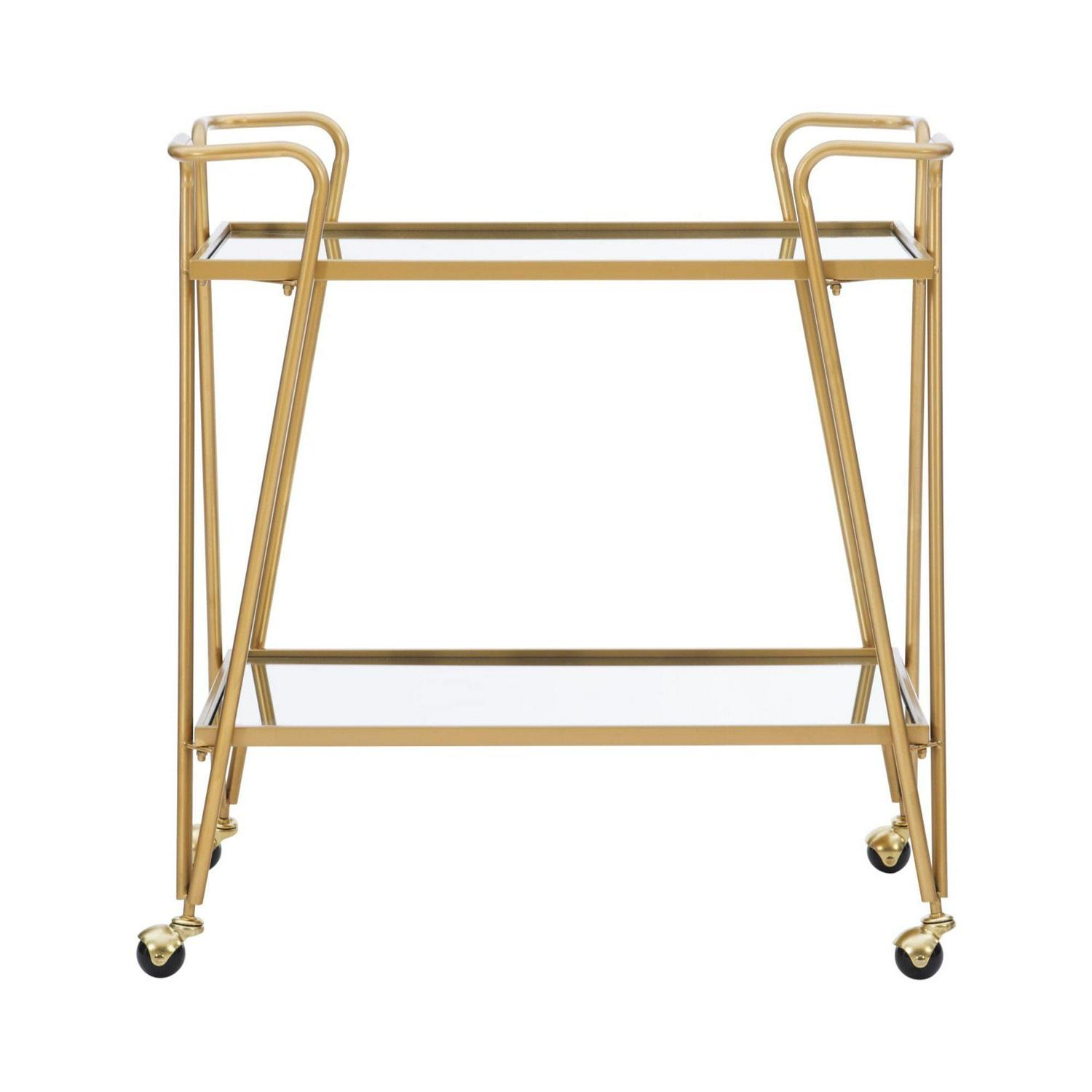Linon 2-Tier Mobile Metal and Glass Bar Cart, 32.5 Tall, 27 lb, Gold