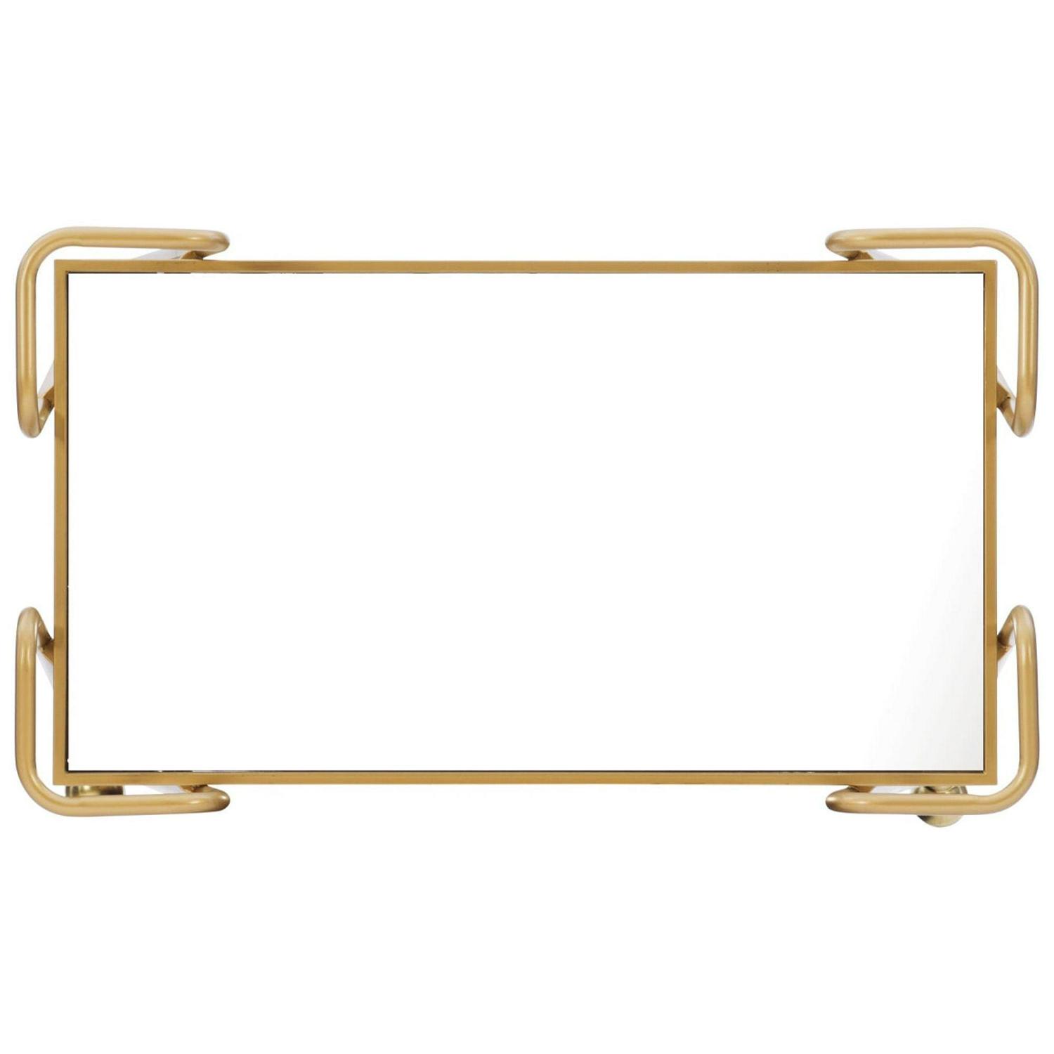 - Both top and lower shelves are mirrored and framed in a gold metal tray