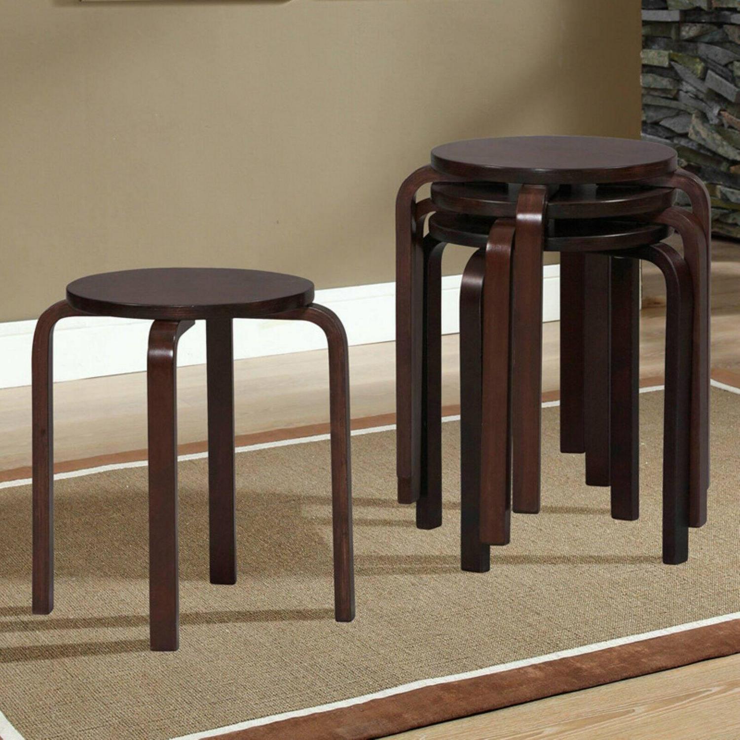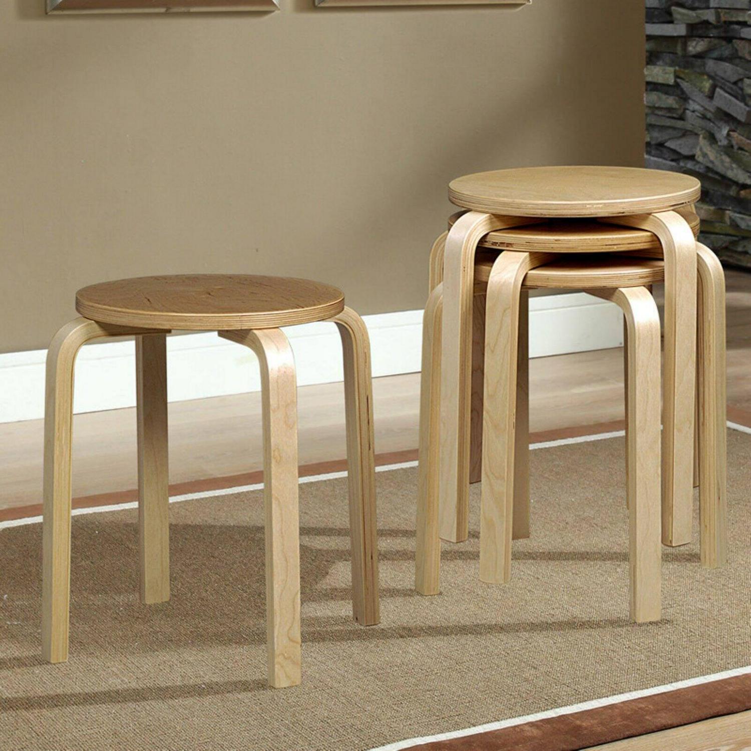 Linon Bentwood Stackable Short Stool – 17 in. – Set of 4