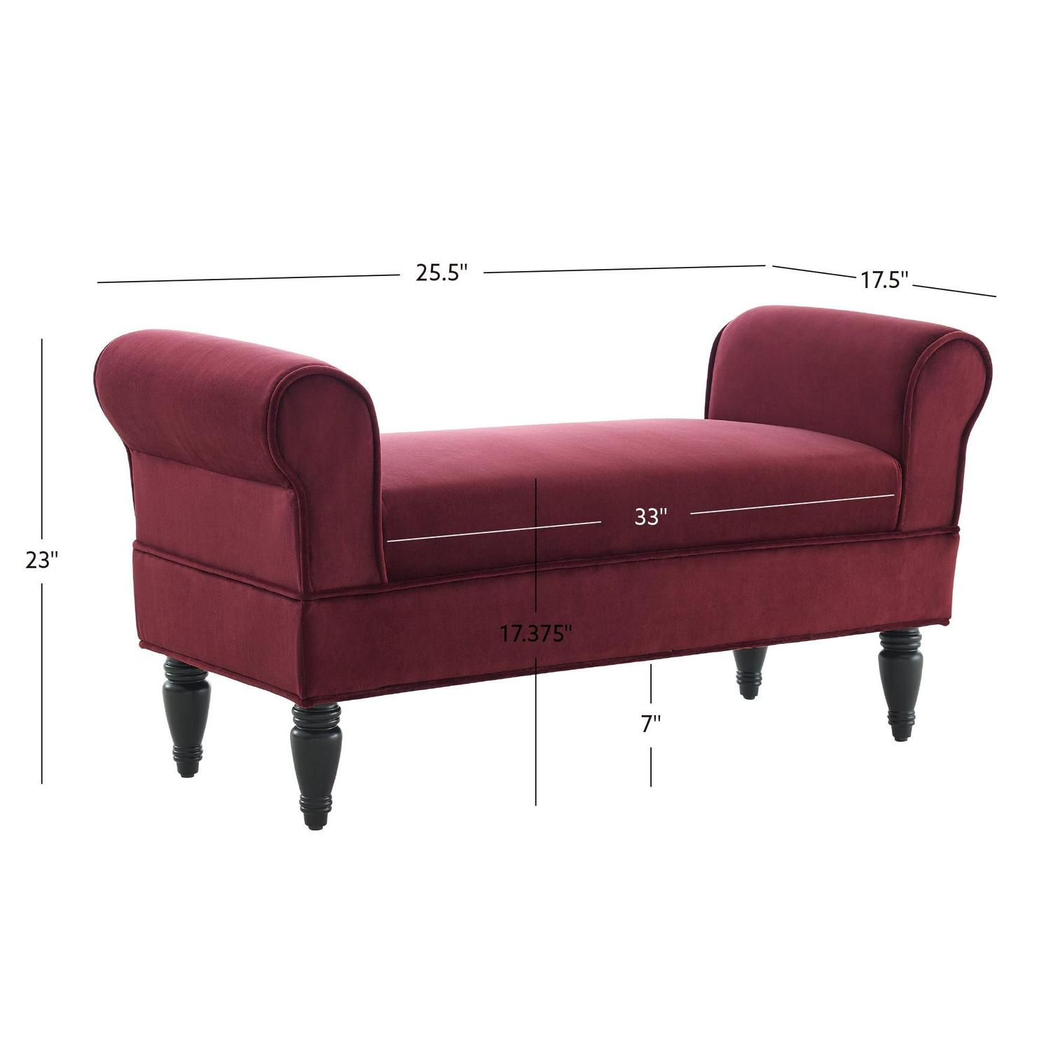 Linon Lillian Rolled Arm Bench, 45.13 L x 17.5 D x 23 H, Berry