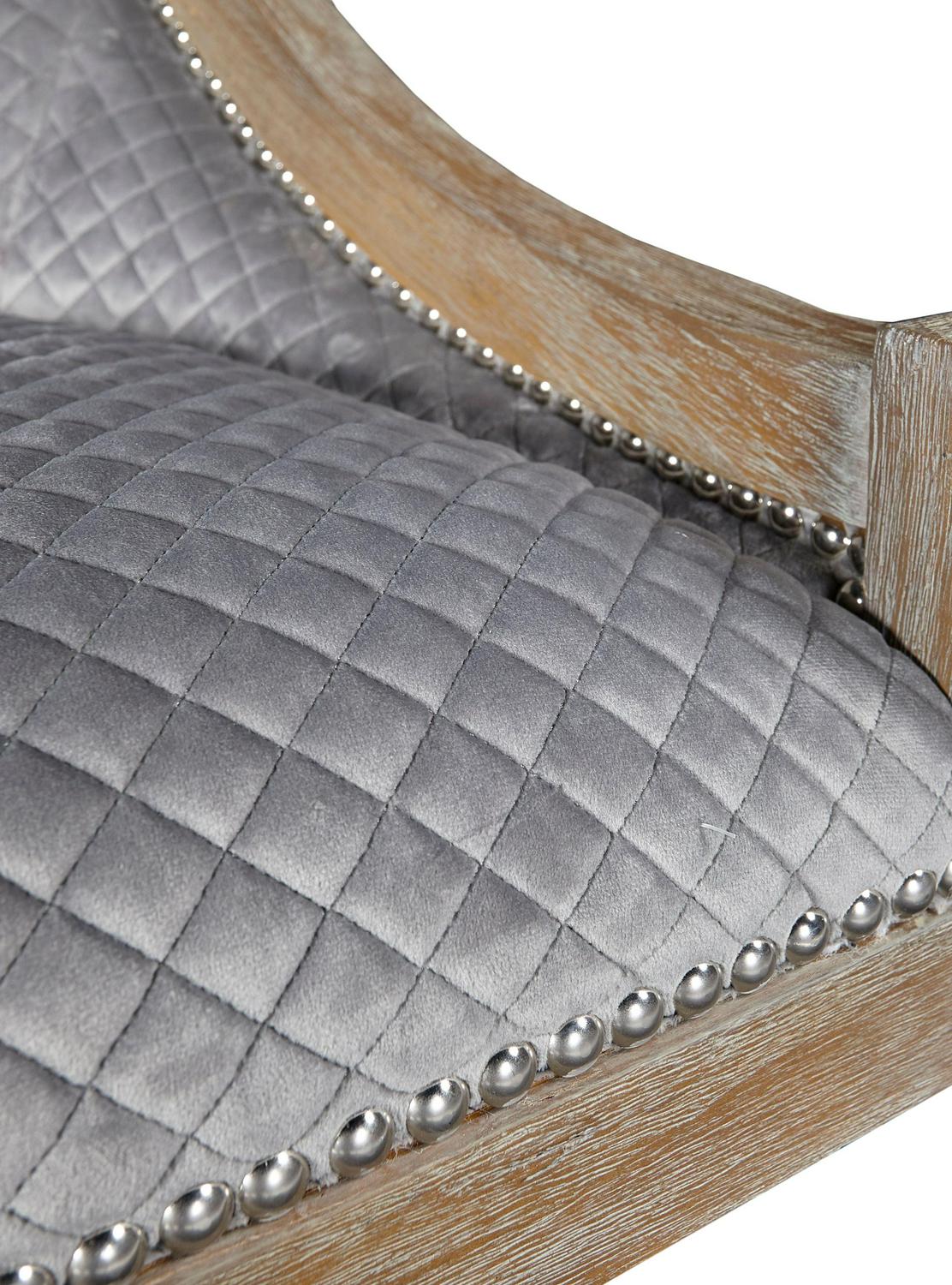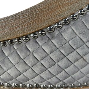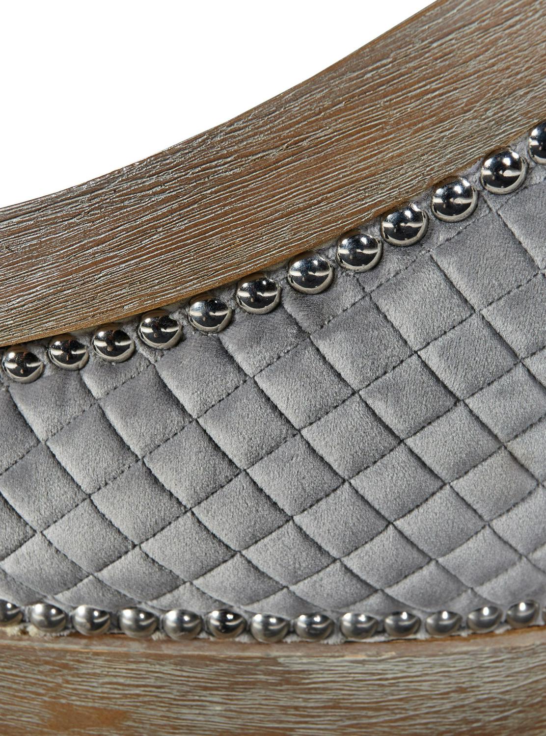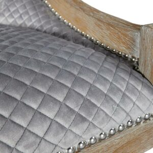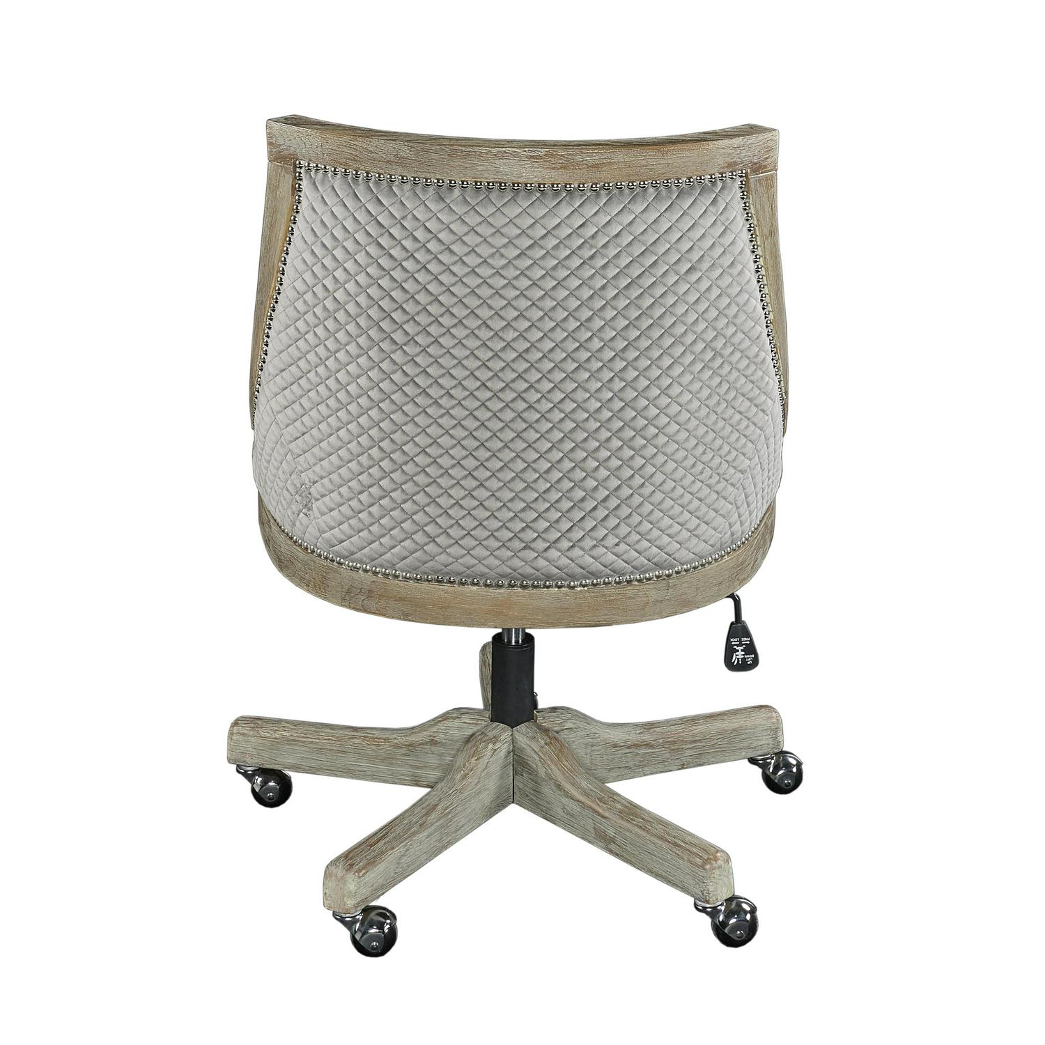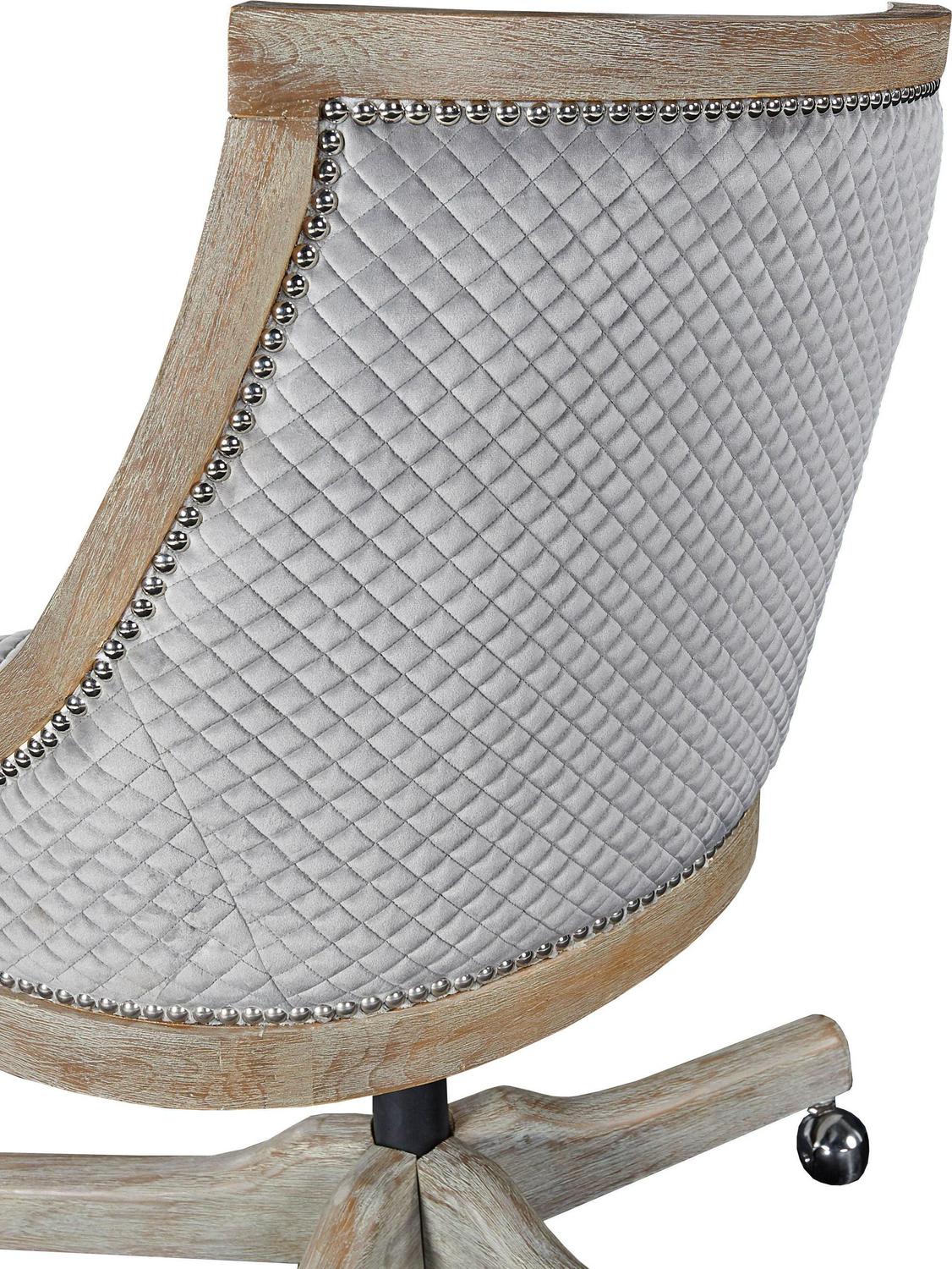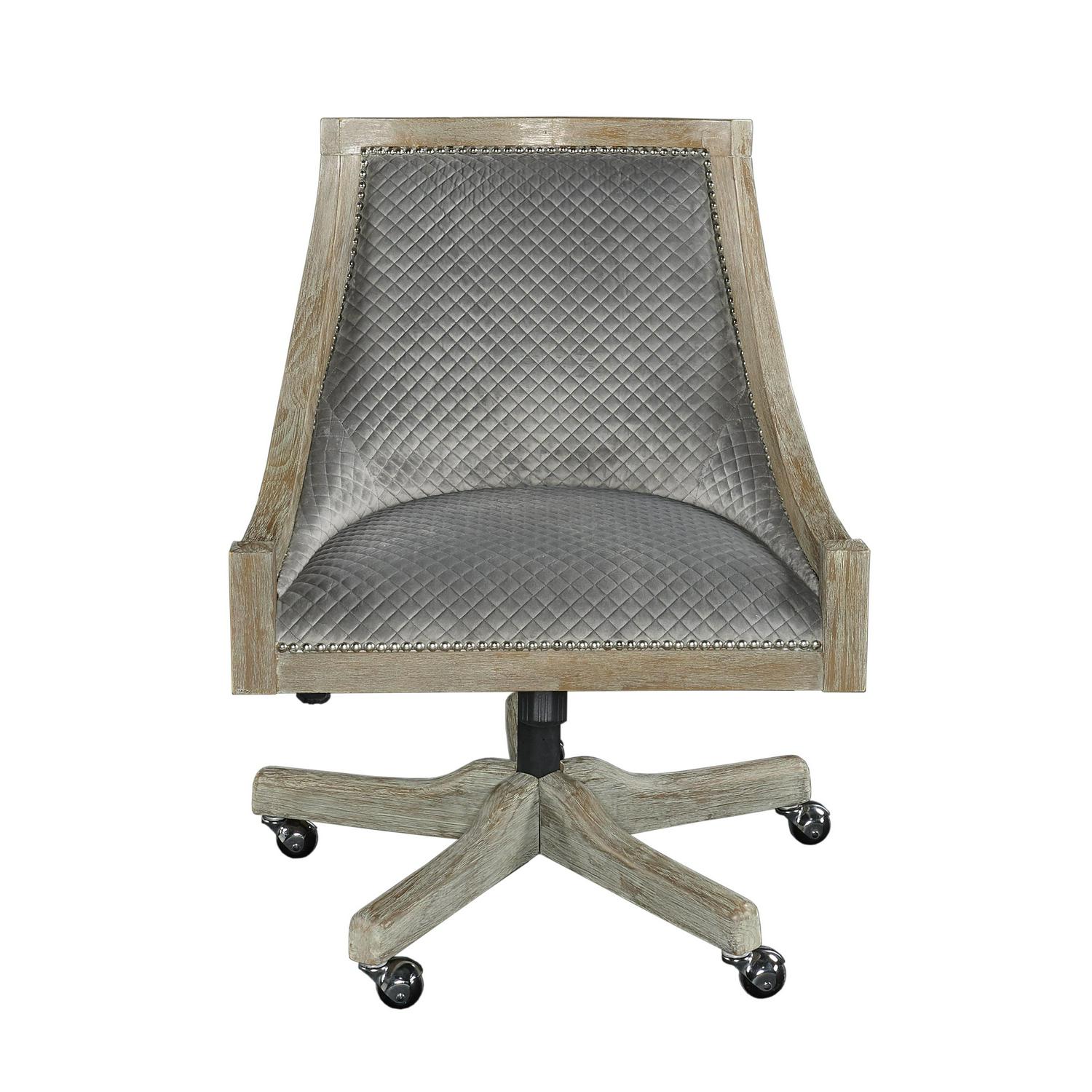 Work at your desk in style with the Mimi Quilted Office Chair. The rustic washed wood frame is accented by luxe gray quilted upholstery and shiny silver nailhead trim. Metal castors make for easy mobility around your workspace, while the plush seat ensures hours of comfort. Adjustable seat height allows the chair to work with a variety of table and desk heights.
