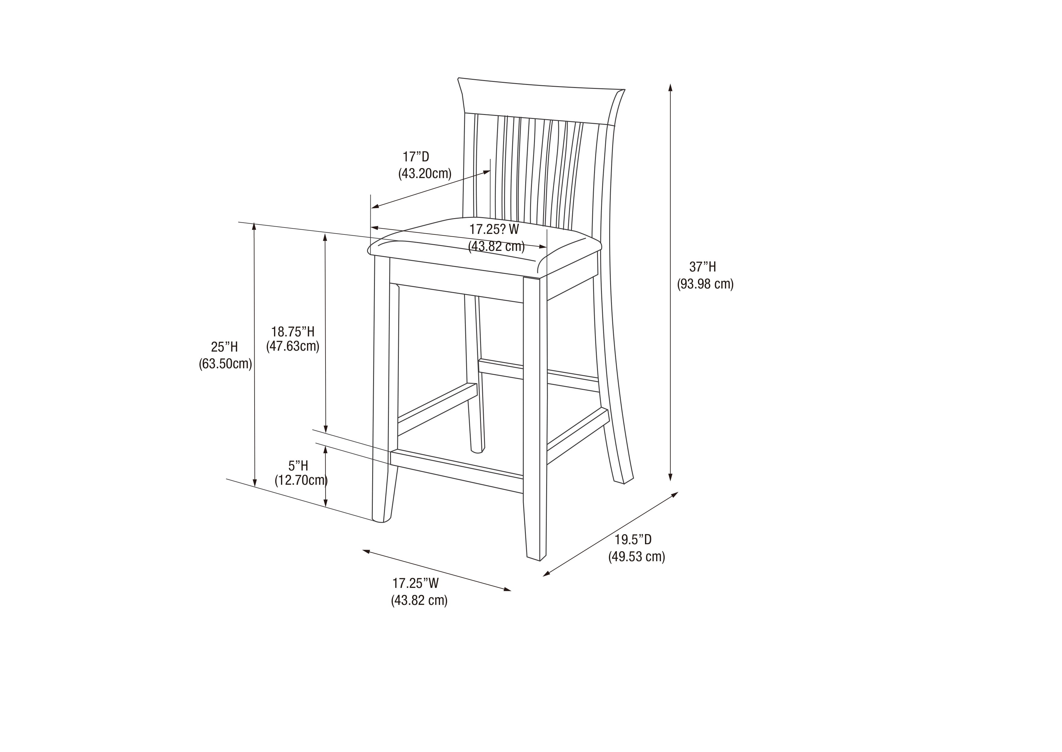 Dark Cherry Finish Dark Brown Vinyl Padded Seat Seat Dimensions: 24″ Seat Height, 17.24″ x 16.85″ x 1.77″ Solid construction and quality craftsmanship Some assembly required Weight Limit: 275 lbs Assembled Dimensions: 17.25″w x 19.5″d x 37″h Ships in 1 box
