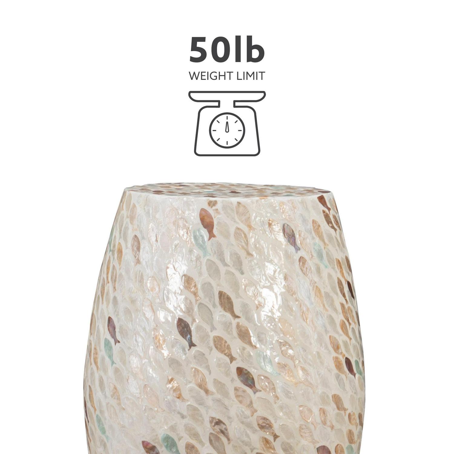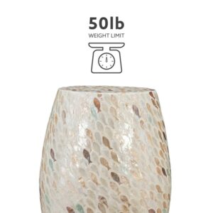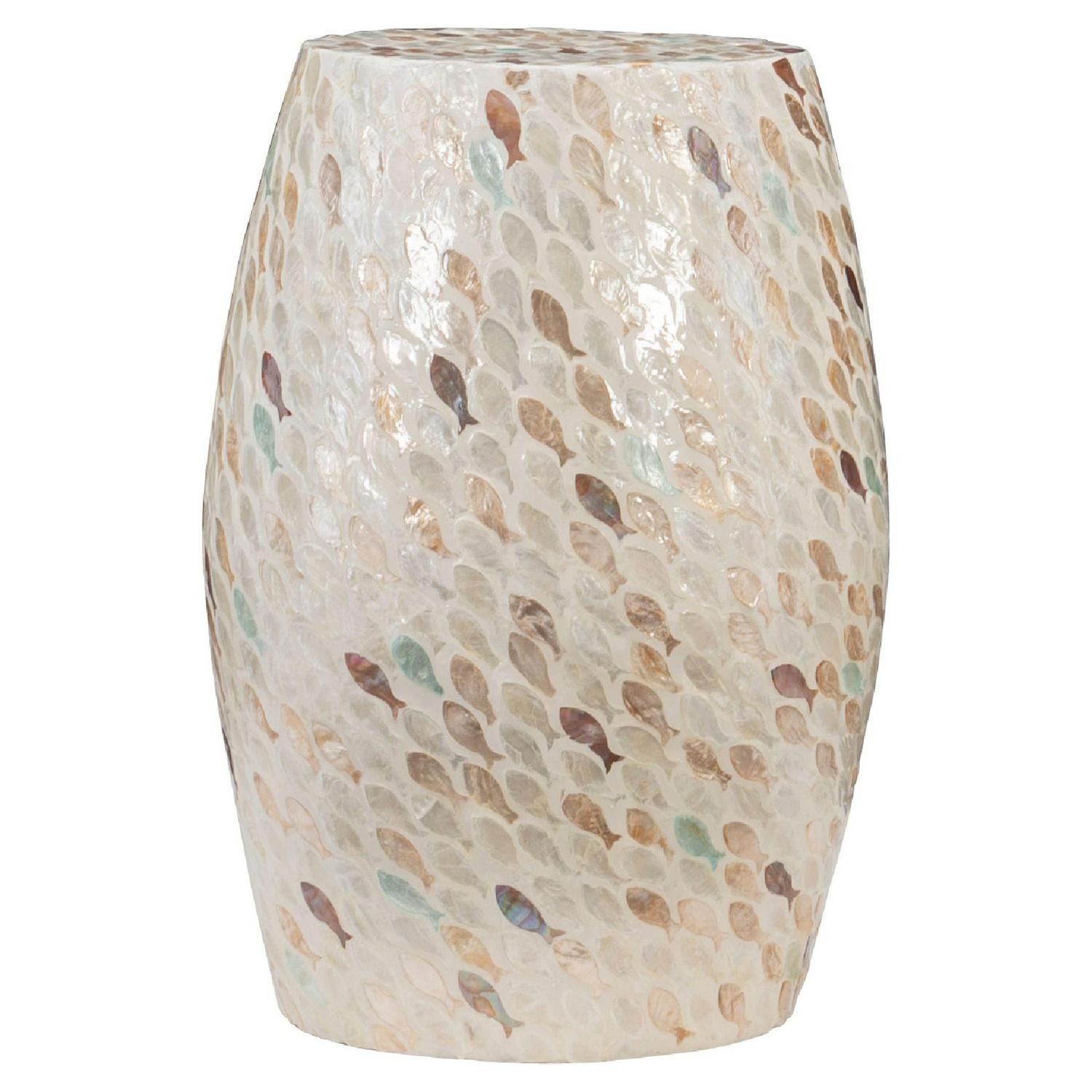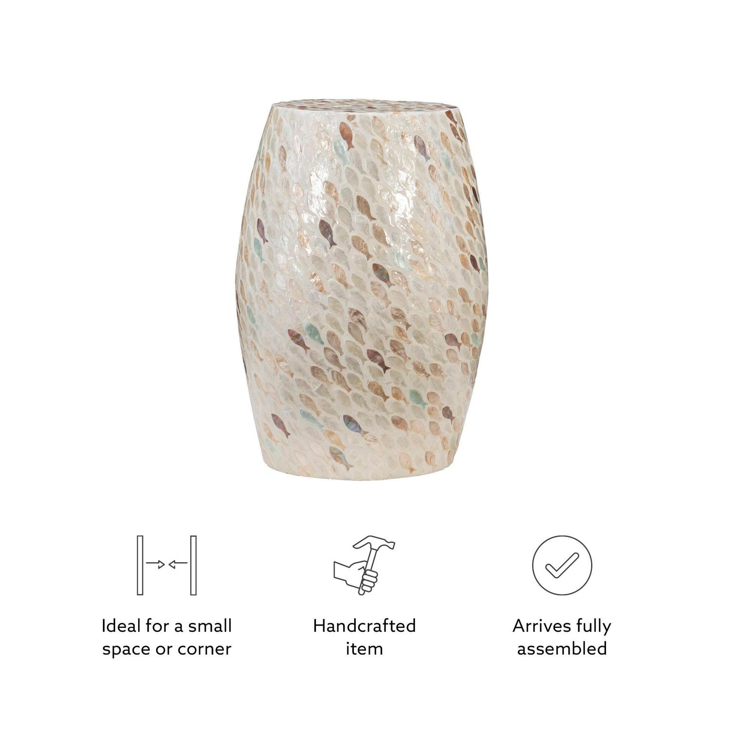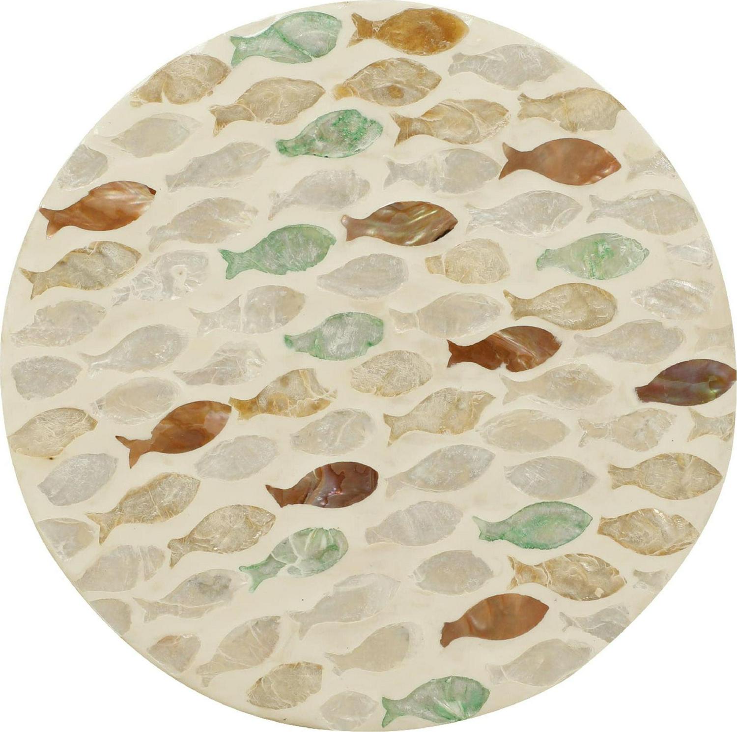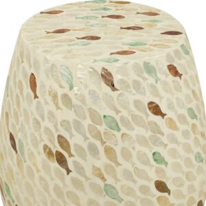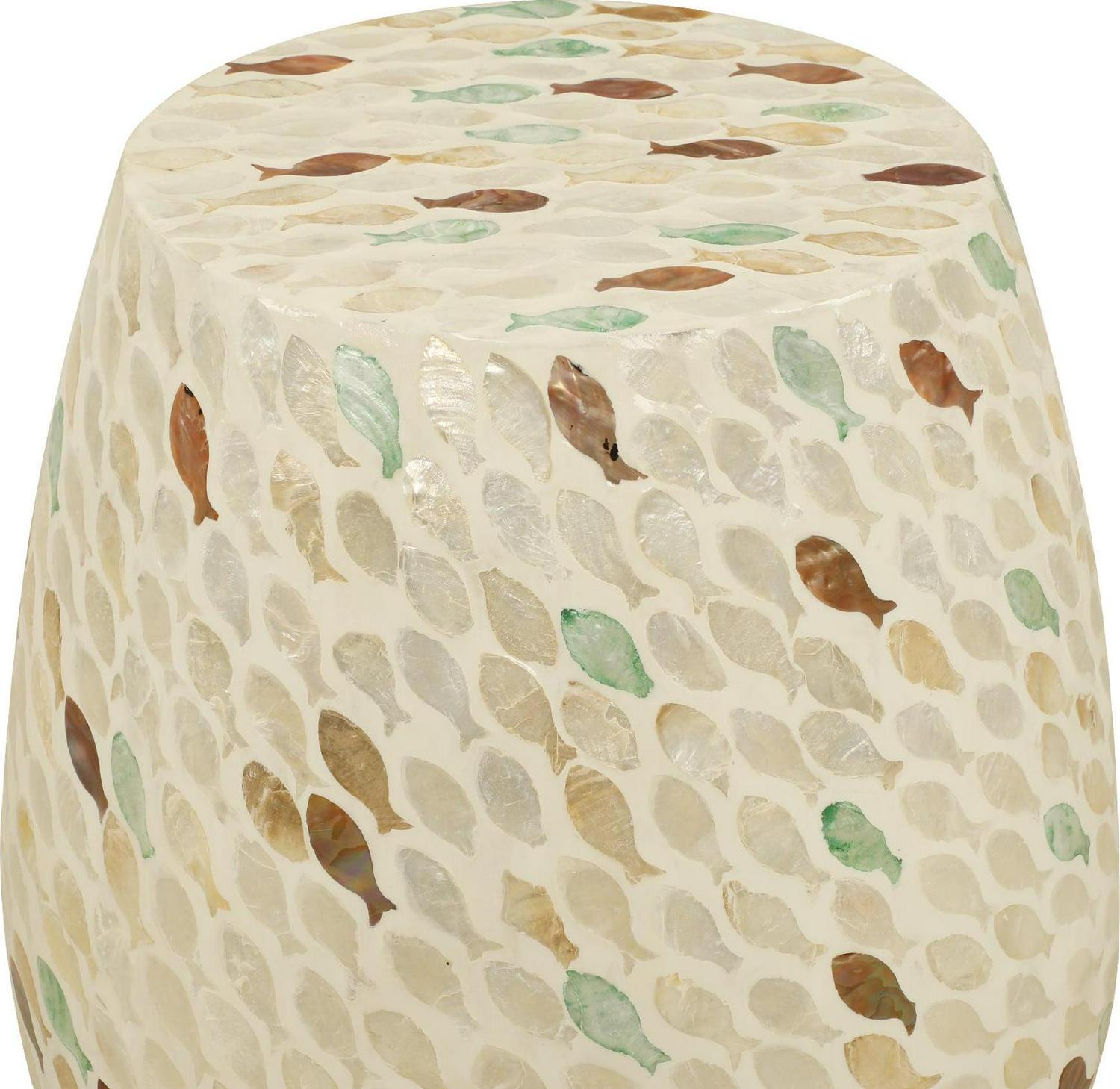 Linon Prescott Indoor Drum Accent Table, 19.75 Tall, Multicolor Fish Mosaic on Ivory