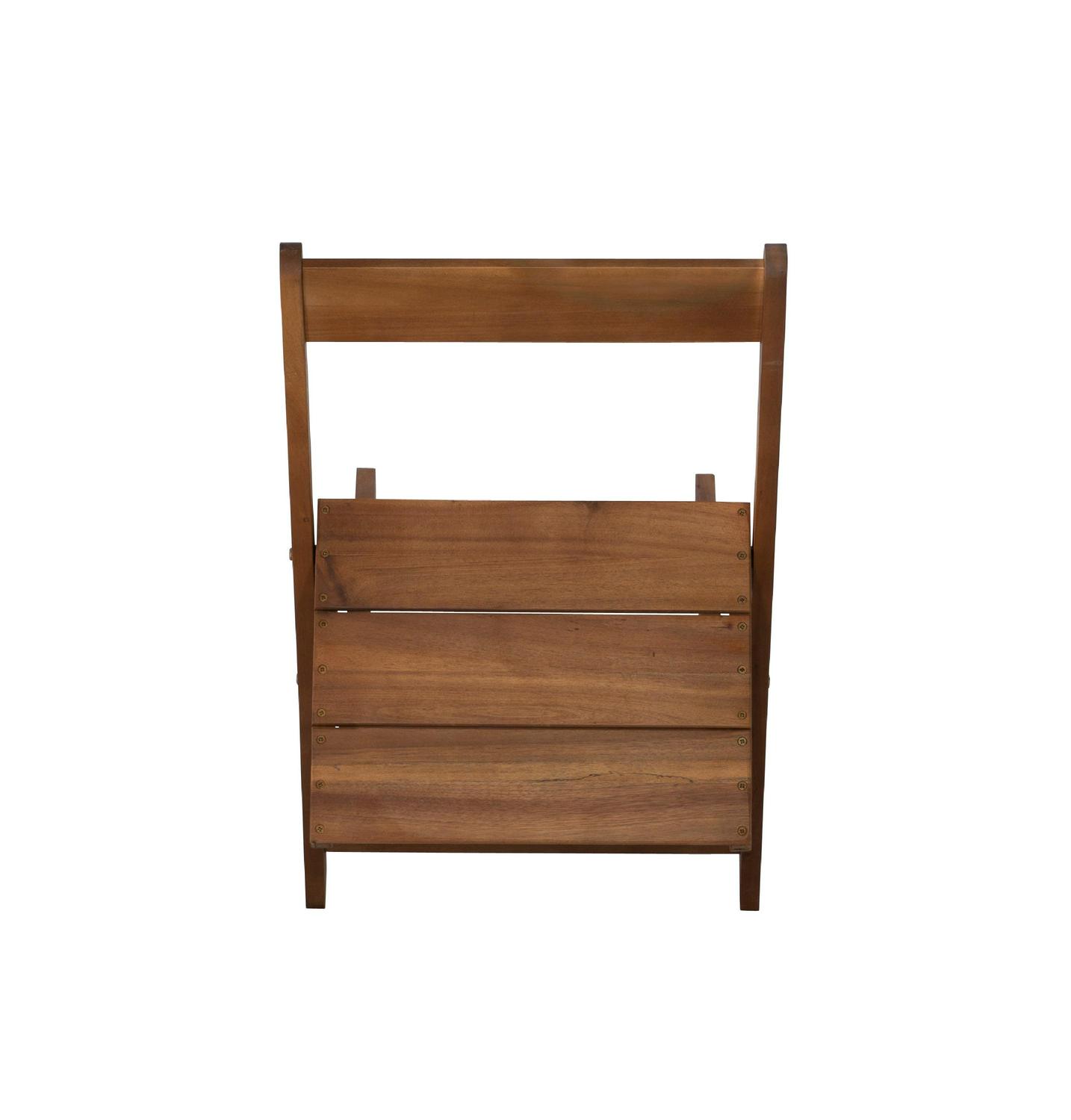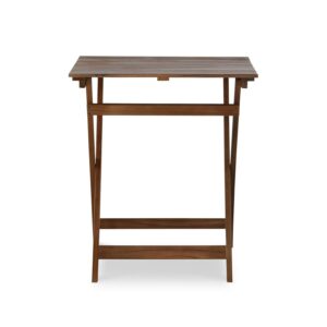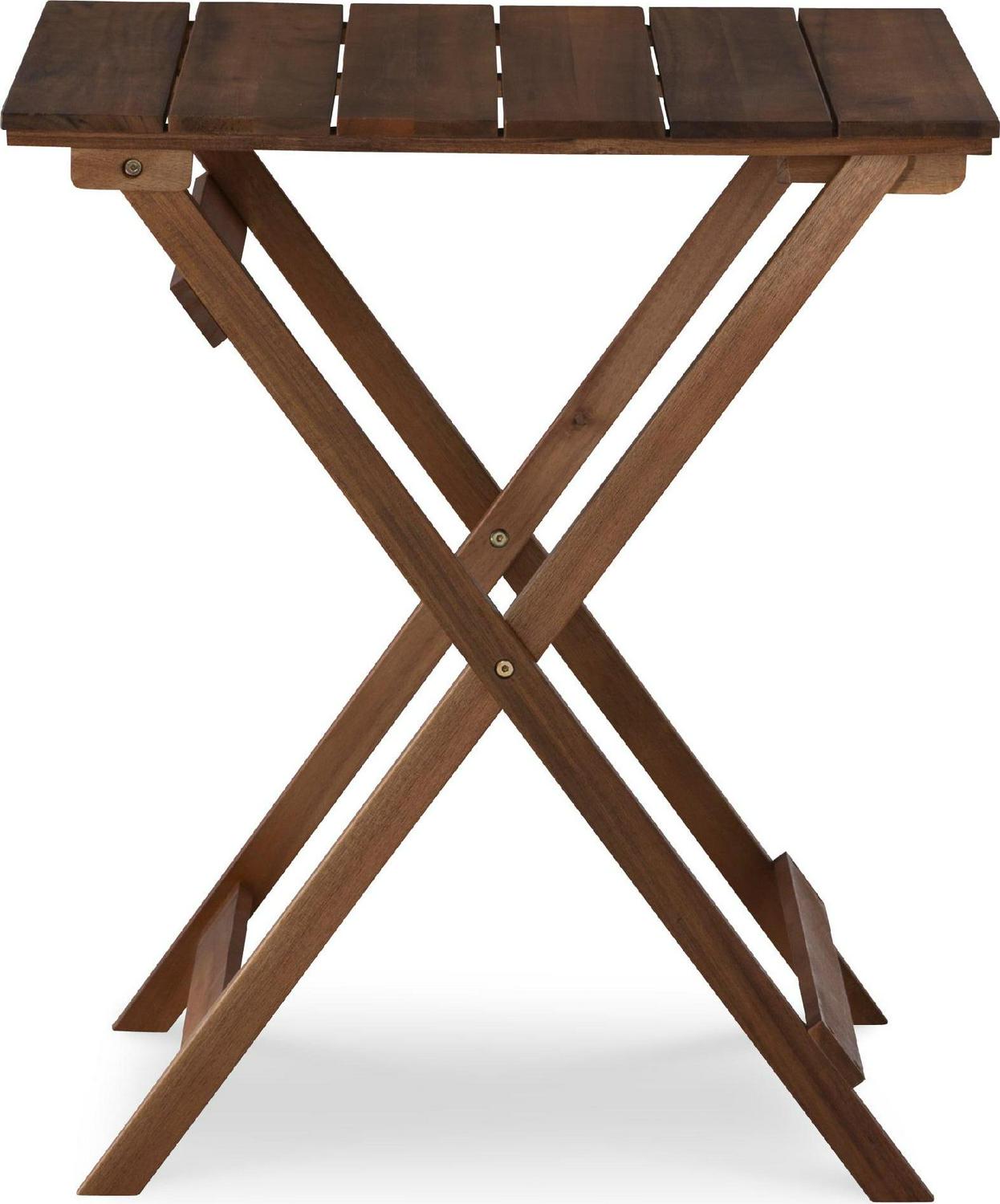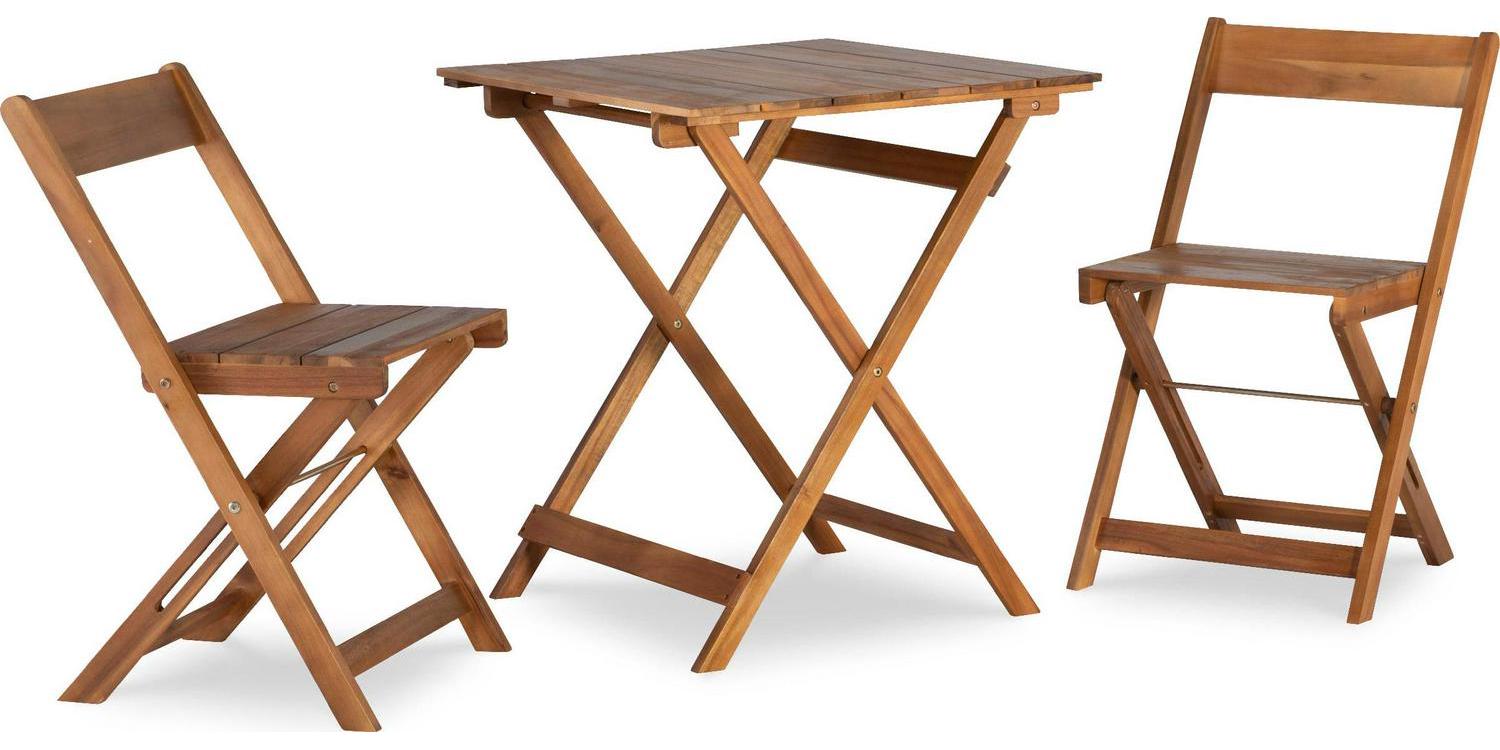 Crafted from solid acacia wood, this three-piece patio set features a classic plank design and warm brown finish. Durable wood construction ensures years of use while a convenient folding design offers easy storage during colder months. Choose from two colors for the shade that best suits your home.