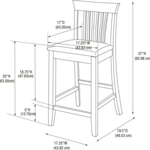 – Assembled size: 17.25″ W x 19.5″ D x 37″ H